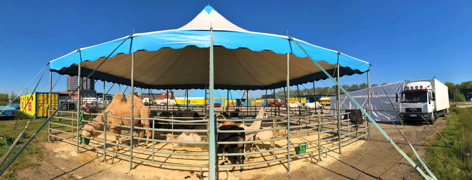De op- en afbouw van de (circus-, stal- en foyer) tenten kan in een dag geschieden. Als om 14.00 uur de voorstelling eindigt, is om 17.00 uur al het materiaal ingepakt en transport klaar, zo wordt ter illustratie vertelt. De tent en de masten worden op een speciale wagen vervoerd. Om beschadigingen en gaten in het tentdoek te voorkomen, mag het tentzeil tijdens de op- en afbouw liever niet op de grond komen. De dierentransporten vinden doorgaans in de avonduren plaats. De grote rood gele trucks rijden de diverse opleggers en (container)aanhangers naar de volgende speelplaats. Daar begint als eerste de opbouw van de dierenverblijven.