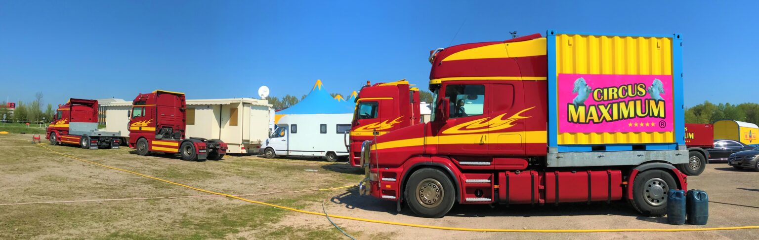 In mooi en fel gekleurde circuswagens reist het gezelschap voornamelijk door Nederland. Het materiaal ziet er goed verzorgd en onderhouden uit. En dat is niet alleen voor de open dag gedaan, zo weet een ieder die het circus al meer dan eens heeft bezocht. De prachtige grote rood met gele trucks, en de geel en blauw gekleurde opleggers en containeraanhangers, en de blauw gele circustent staan mooi opgesteld. Daar is ook ruimte voor.