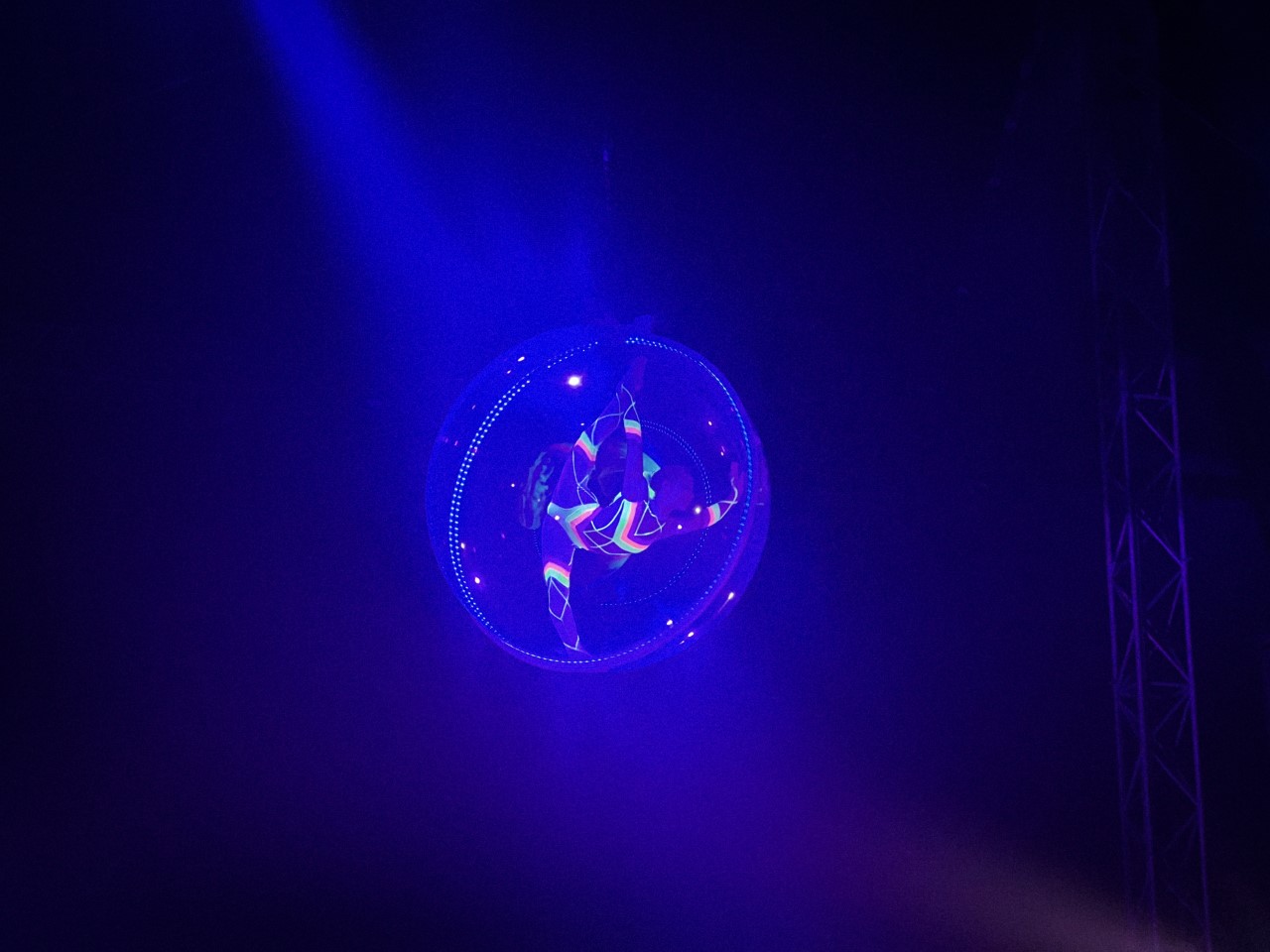 Daarna zien we luchtacrobatiek in een grote doorzichtige bal. En de voorstelling sluit spectaculair af met maar liefst zeven motoren van The Hell Riders in grote stalen kogel. Deze groep Colombianen en Ovidiu Tell zijn de absolute programma-highlights.