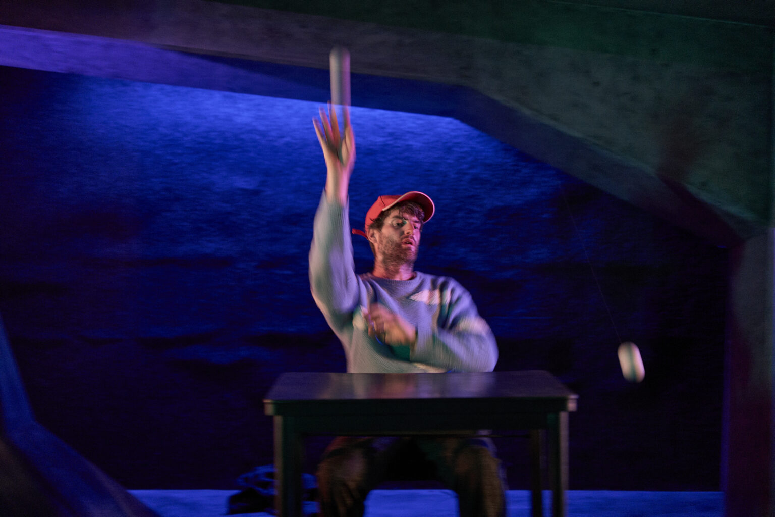 Die vragen resoneren na het zien van de voorstelling ‘Ballroom’ van het Vlaamse gezelschap Post uit Hessdalen. In deze solo combineert Stijn Gruppin jonglerie met objectmanipulatie, en dat op verbluffende wijze. De ogen zien wat het hoofd maar niet kan begrijpen.