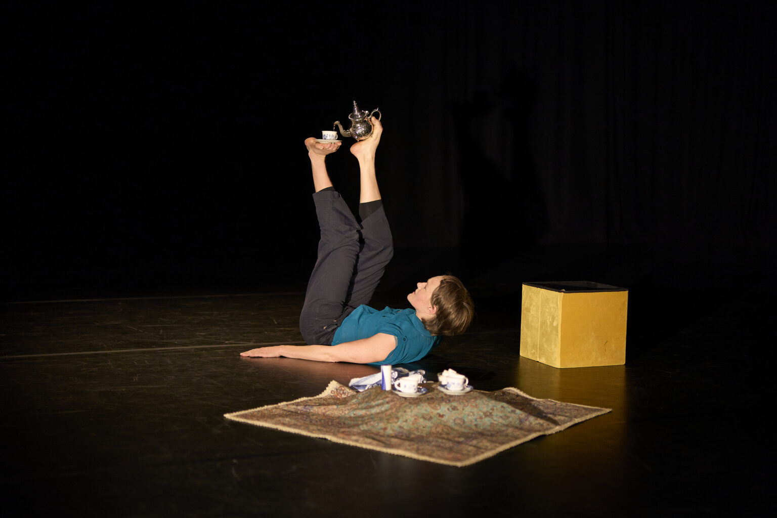 De ontmoeting met haar Iraanse familie en oma’s die de artiest beschrijft, verbeeldt ze met acrobatiek. Zo houdt ze – liggend op haar rug – met de ene voet een kopje vast en met de andere voet schenkt ze thee uit een kannetje. Op een ander moment houdt ze met haar voeten een blad met daarop drie kopjes omhoog en gooit zonder dat ze die kopjes kan zien suikerklontjes op de schoteltjes.