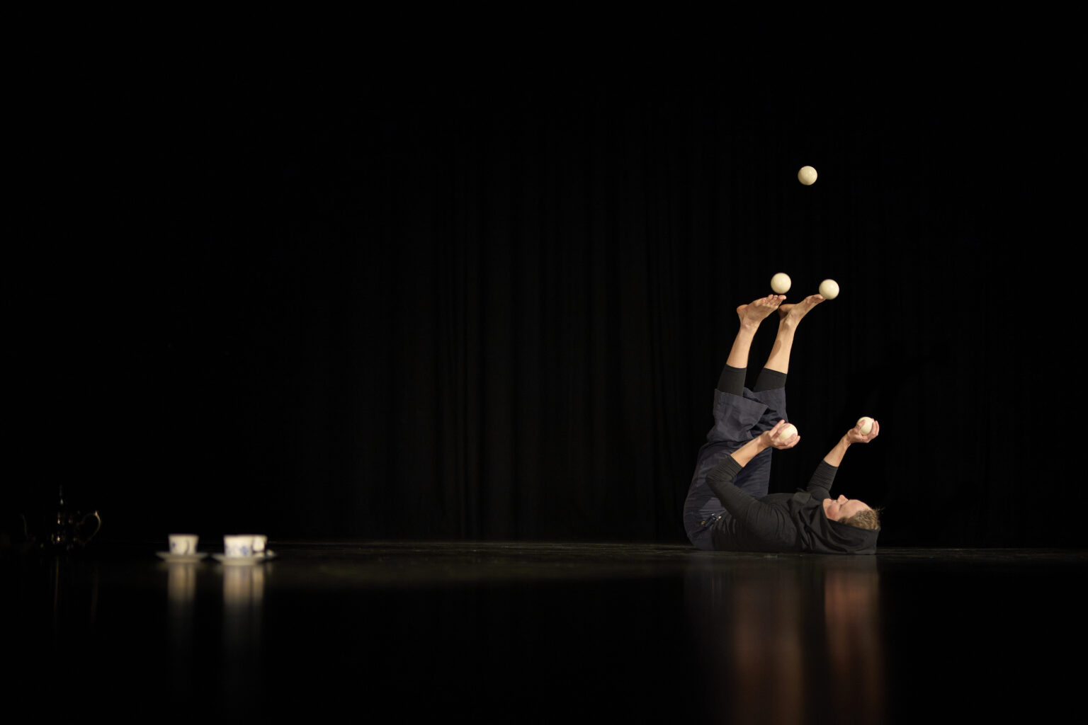 De Duits-Iraanse Roxana Küwen Arsalan is eveneens jongleur. Zij jongleert vooral met haar voeten. Ook haar voorstelling ‘Omâ or the privileges of the potato’ beklijft en dat heeft niet in het minst te maken met het persoonlijke verhaal dat ze met het publiek deelt.