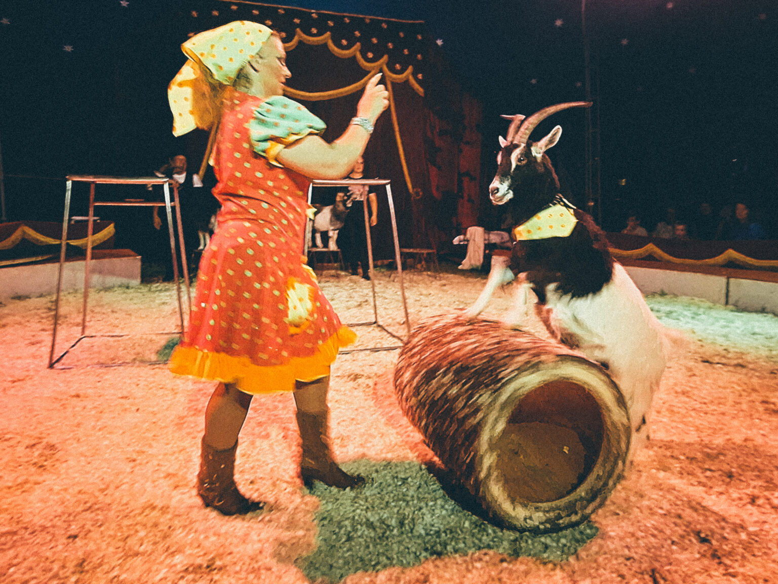 Een bijna tienkoppig gezelschap brengt daarna een voorstelling met jonglage, trapeze, illusies, een geitenparade, duiven, bordjes draaien, clownerie, fietsbalans en een heerlijke act met poezen. Uiteraard deels door de familie Zinnecker zelf, aangevuld met duo Kiszi uit Hongarije en uit België Franky en Jessy.