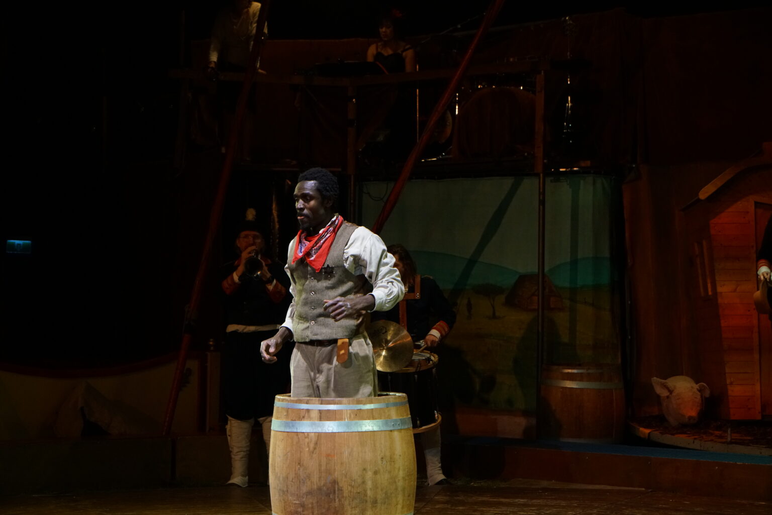 Zo ontwikkelt het voorstellingverhaal zich. De band staat daarbij boven op het decor en hun muziek neemt het publiek mee. Het is een levendig gebeuren. De artiesten zijn voortdurend aanwezig in hun eigen rol, of als ondersteuner van een andere act.