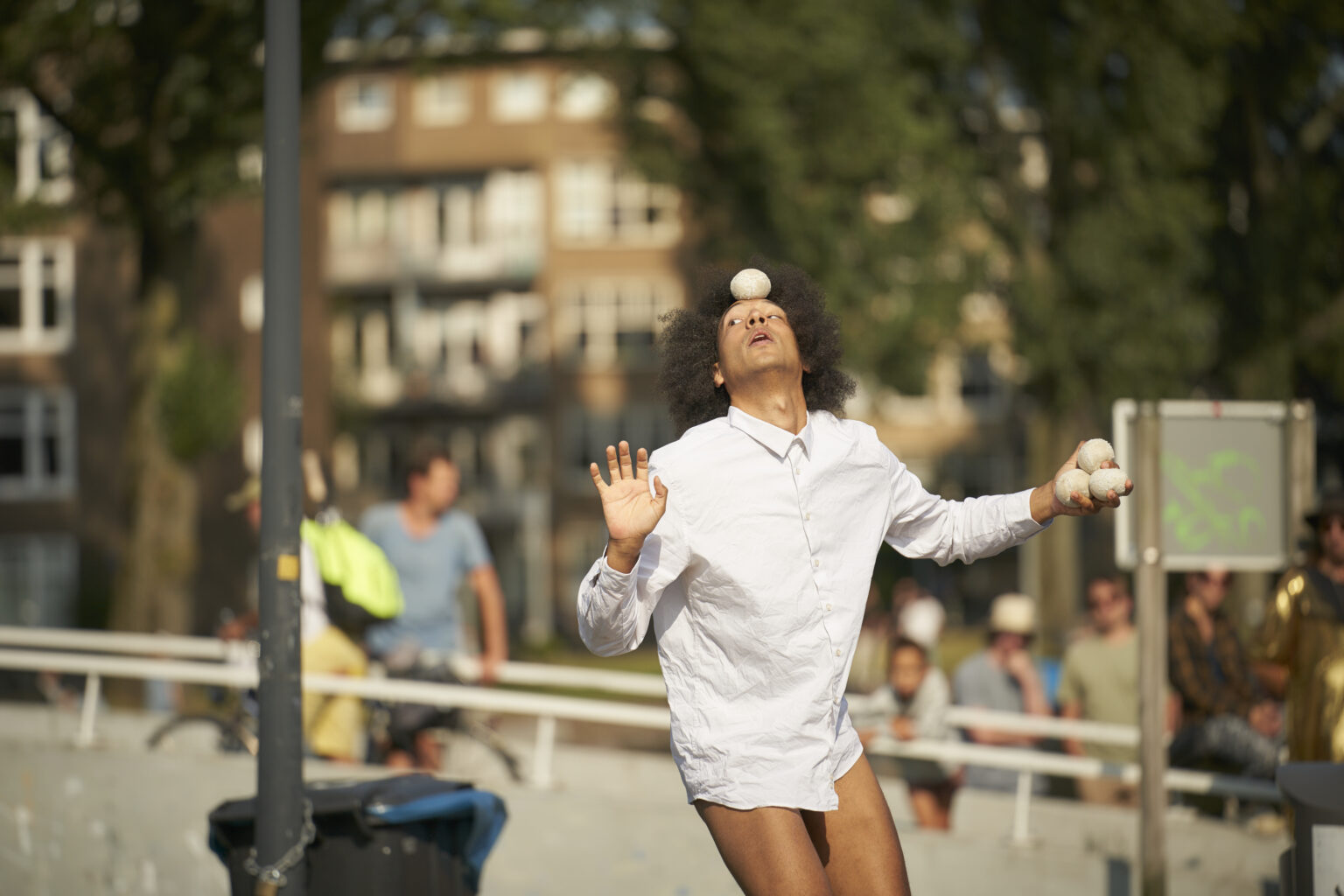 Het programma zat uitgebreid vol. Dus na Mentir lo Minimo sloten we bijna direct aan bij de funky jongleershow Mismo Nismo (Circusbende programmeert inderdaad vooral shows met titels die passen bij de onbegrijpelijke bende) van Juggling Concert, gevolgd door het bizarre Têtes de Mules die door middel van poppentheater een grimmige circuswereld tot leven wekten. In de laatste avonduren – na een dag waarop je uiterlijk acht shows in één ruk door kon zien – konden we uitblazen op stampende muziek met Kaapverdische roots. Zo bracht Circusbende een heerlijk universum bij elkaar in het Erasmuspark.