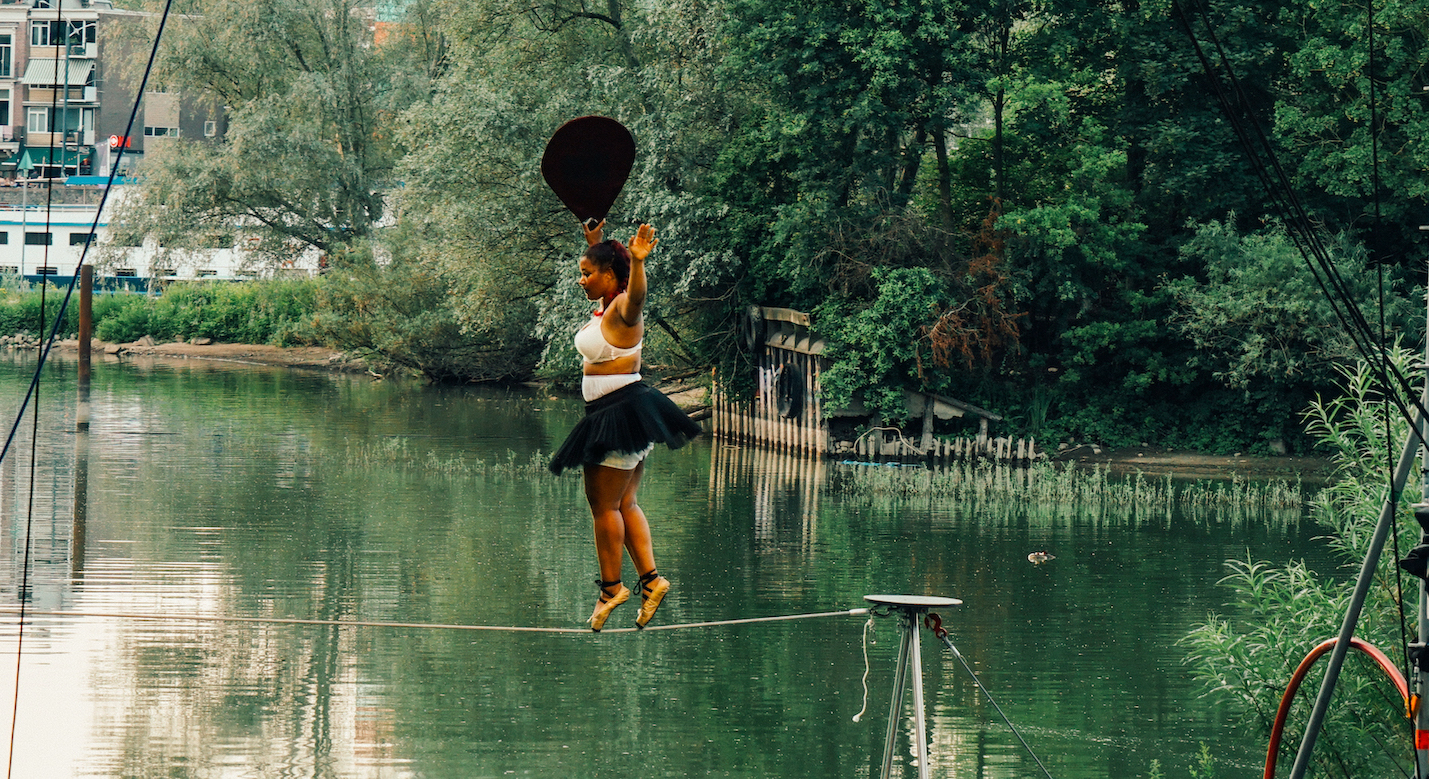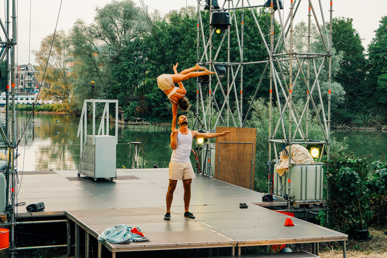 Dat geldt niet voor de strakke draad van Estelle Borel. Tóch krijgt die scène een hele mooie plek in de voorstelling. Estelle schittert met haar balanswerk vlak naast het water en laat tapdansend en in het Cyr Wheel zien multi-inzetbaar te zijn.