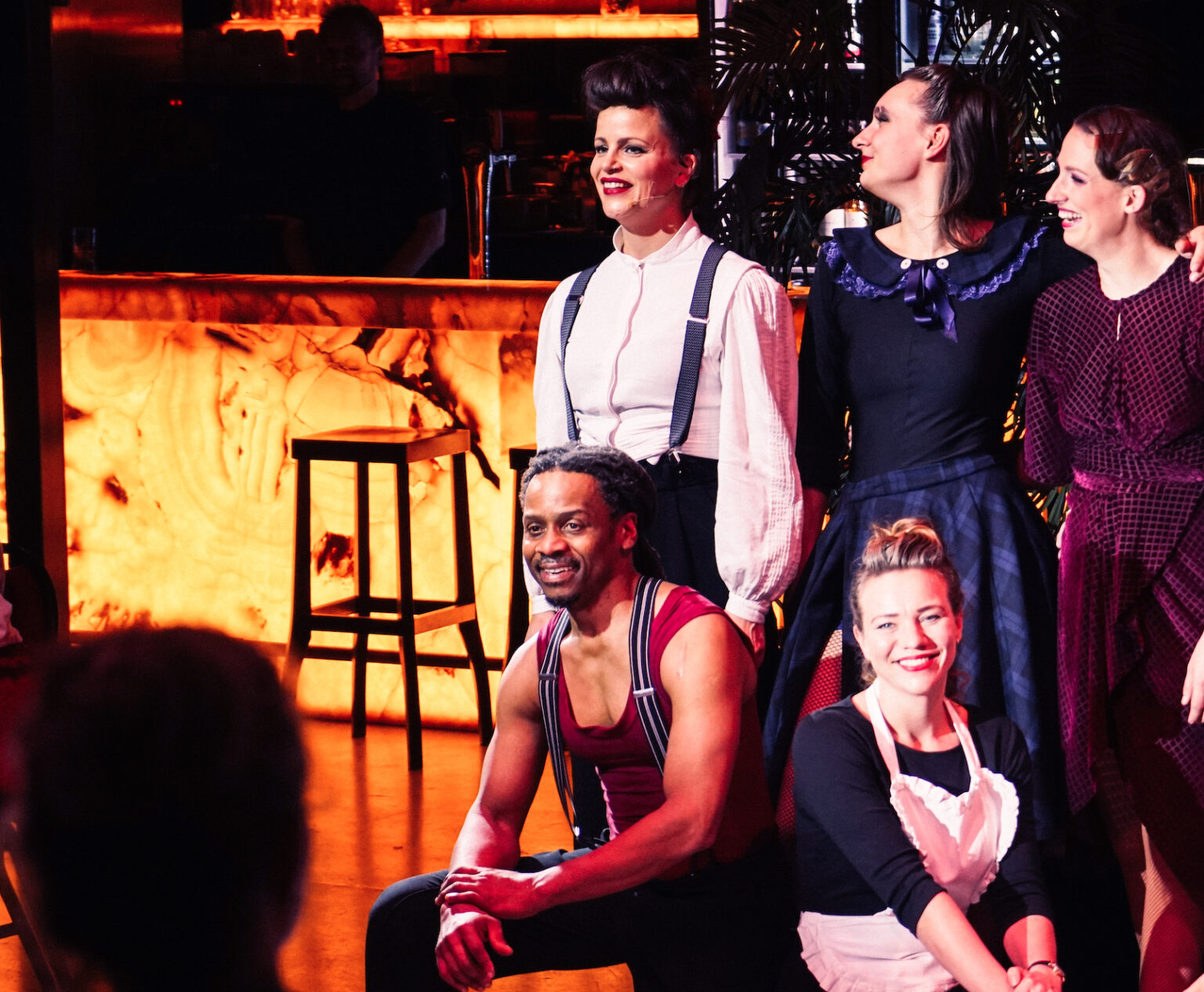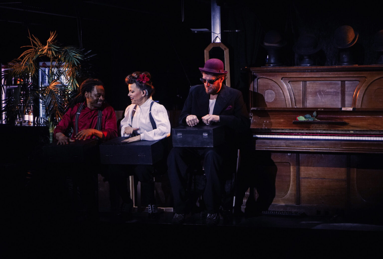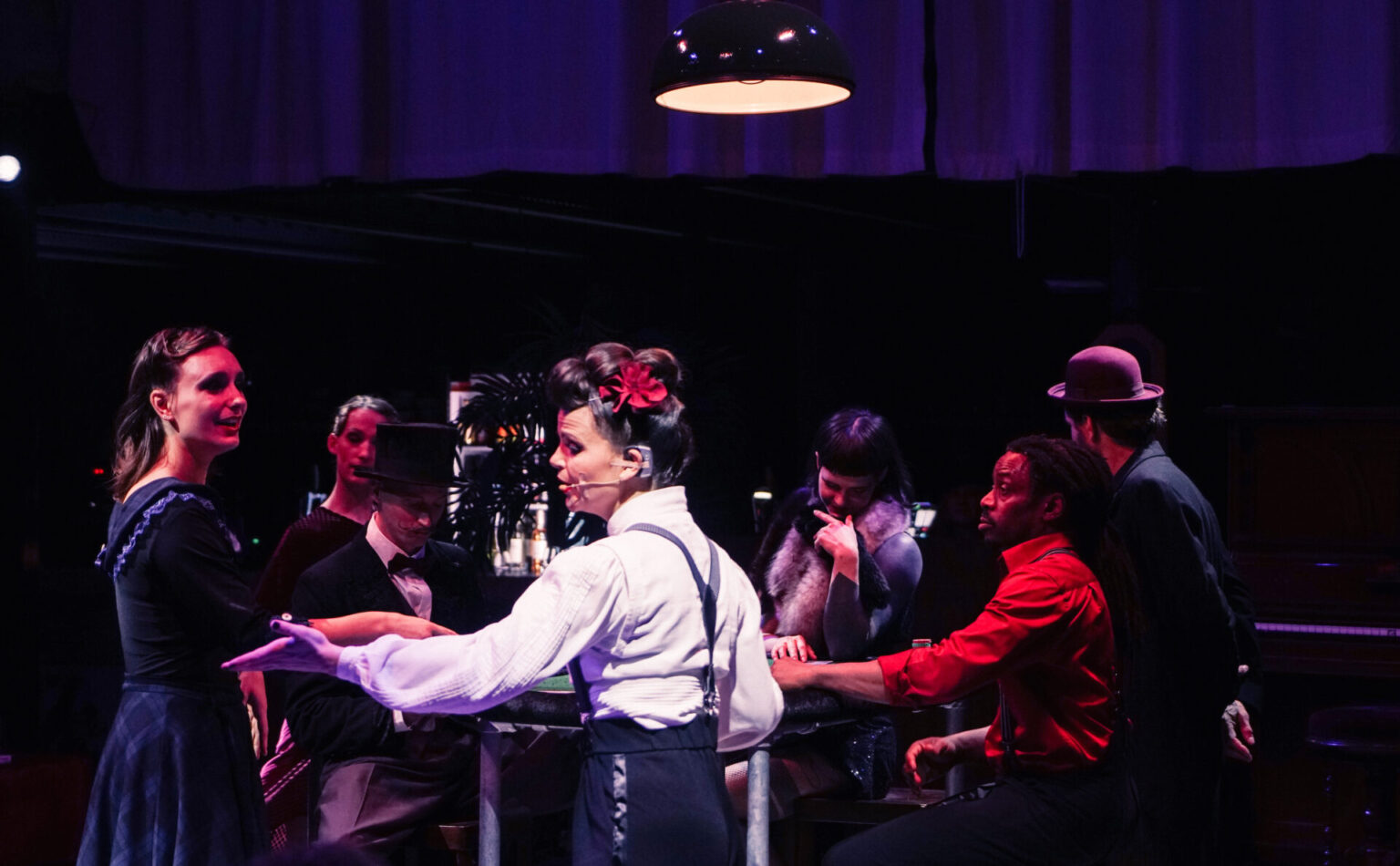 Maar dat is eigenlijk het enige minpunt in de voorstelling. Overige scènes aan de goktafel zitten strakker in elkaar en creëren prachtige theatrale plaatjes. Markante artiesten die volop aan het gokken zijn. Bij scenes als deze ontbreekt eigenlijk alleen de boven de tafel hangende sigarettenwalm: dan was het filmische plaatje helemaal compleet geweest.