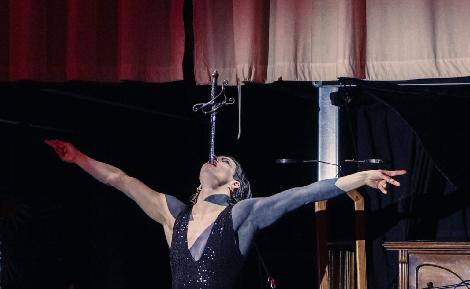 Verrassing komt van de zingende hoofden die uit de piano naar boven komen én van Lisa Chudalla, die daarna wat anders naar binnen werkt dan eten. Chudalla slikt degen/zwaarden in. En het is heerlijk om te zien dat de ene bezoeker ervan gruwelt en de andere bezoeker gefascineerd deze bizarre ambacht aanschouwt.