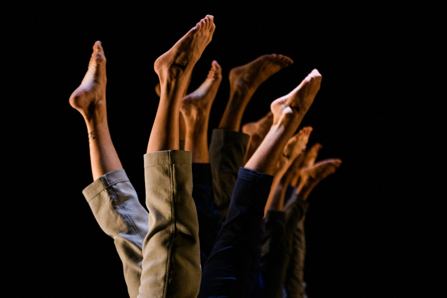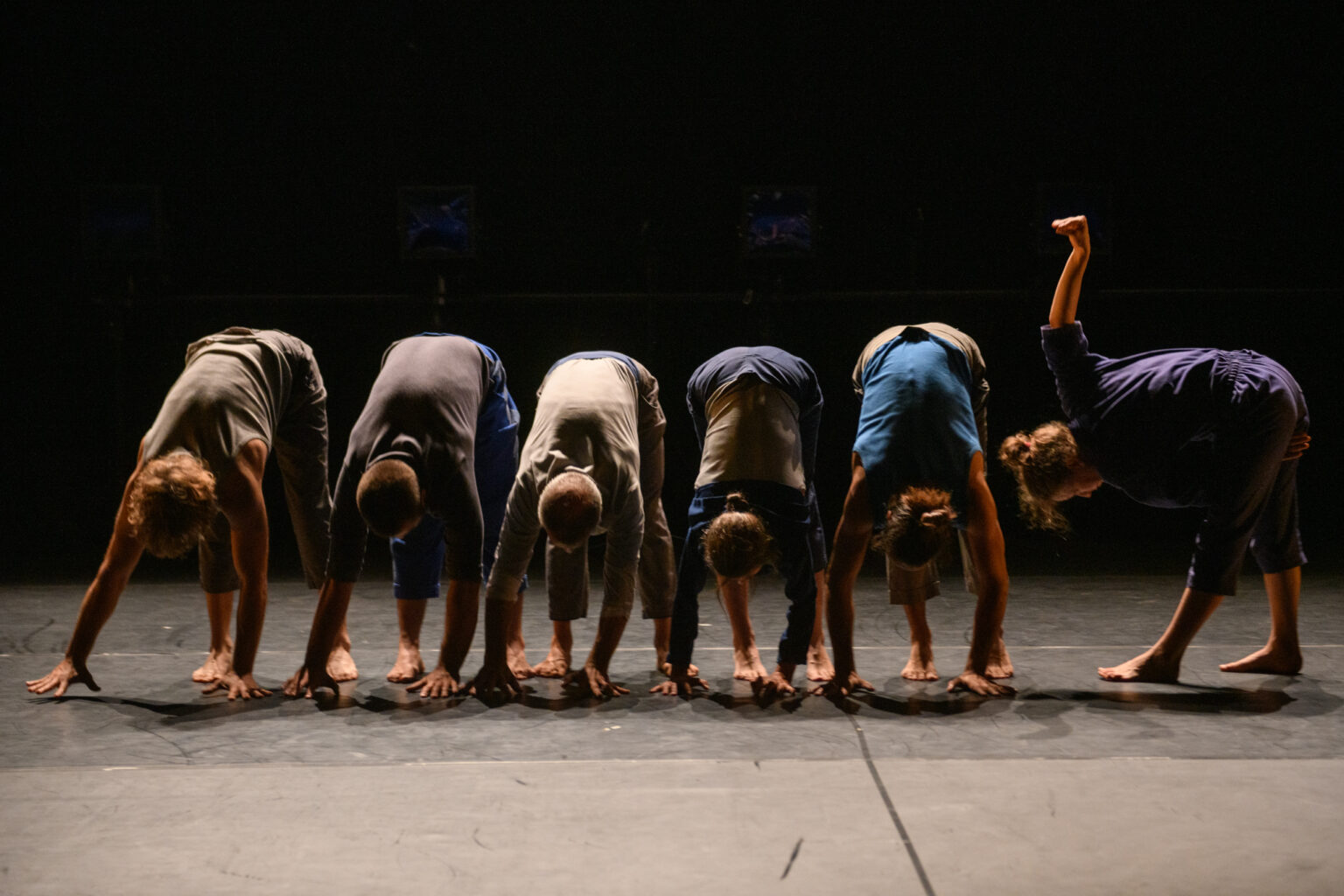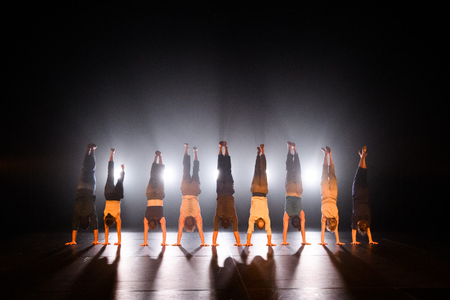 Het lijnenwerk dat zichtbaar was aan het begin van de voorstelling keert aan het einde van de voorstelling terug. Daarmee sluit de groep artiesten af. Met z’n allen in een horizontale en verticale lijn bewegen ze zich over het podium. Handstand maken, rechtop staan: dat oneindig herhalend én in een steeds sneller tempo. Bizar! Na een groot deel van het afgelopen uur in handstandpose doorgebracht te hebben, is dit een grandioos einde.