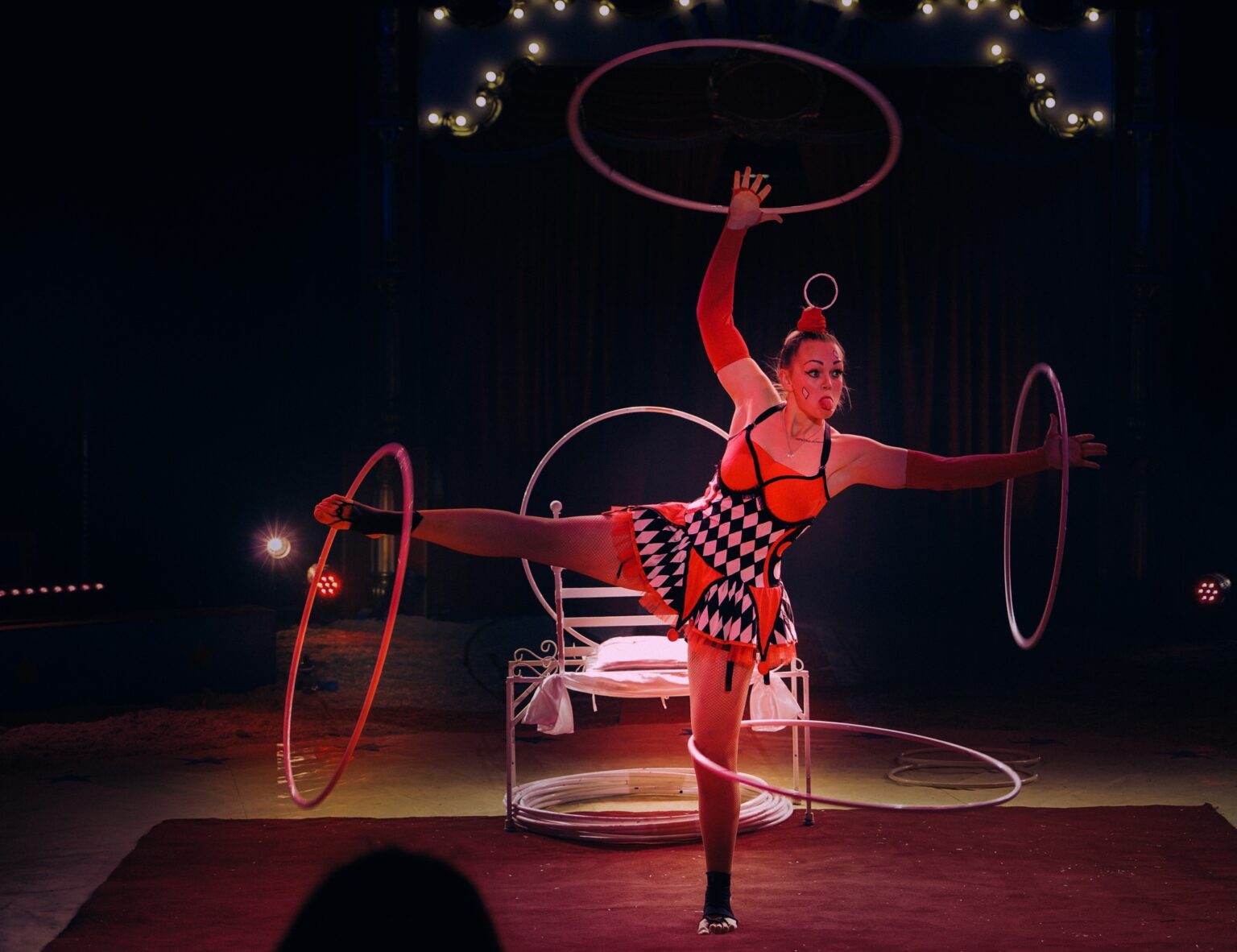 Aleksandra Sobolieva die daarna de piste betrad, had misschien wel de beste act van de voorstelling. Met een hoelahoepact meets jonglage, uitgevoerd door haar bijzondere harlekijn-achtige karakter, toont ze een vermakelijke act die simpelweg heel goed in elkaar zat.