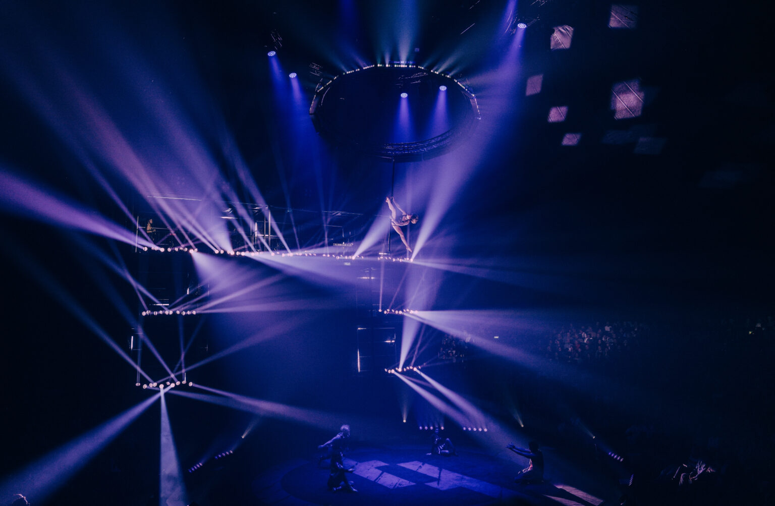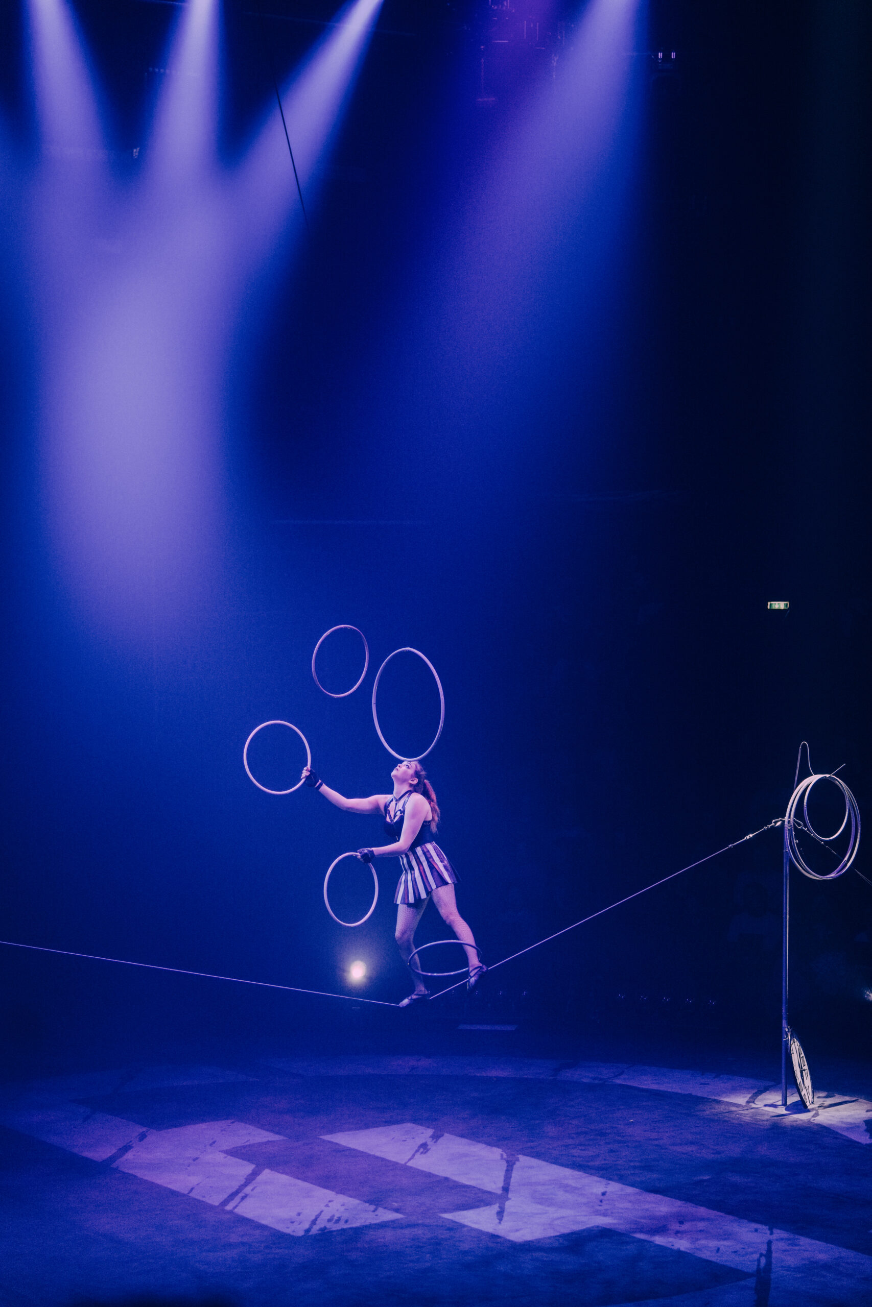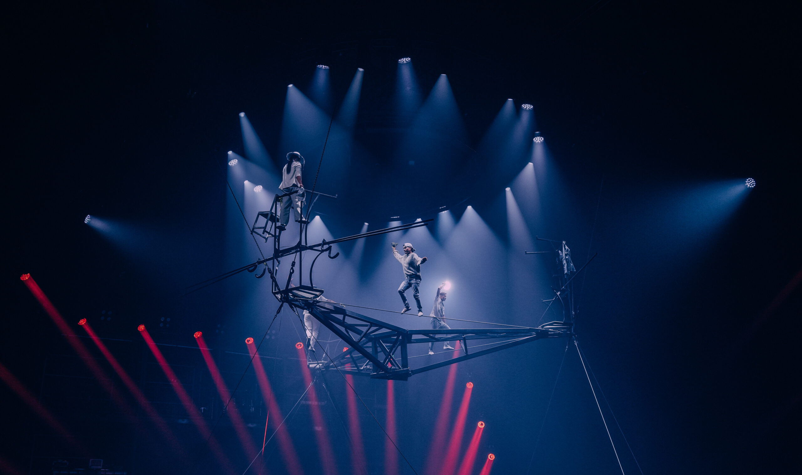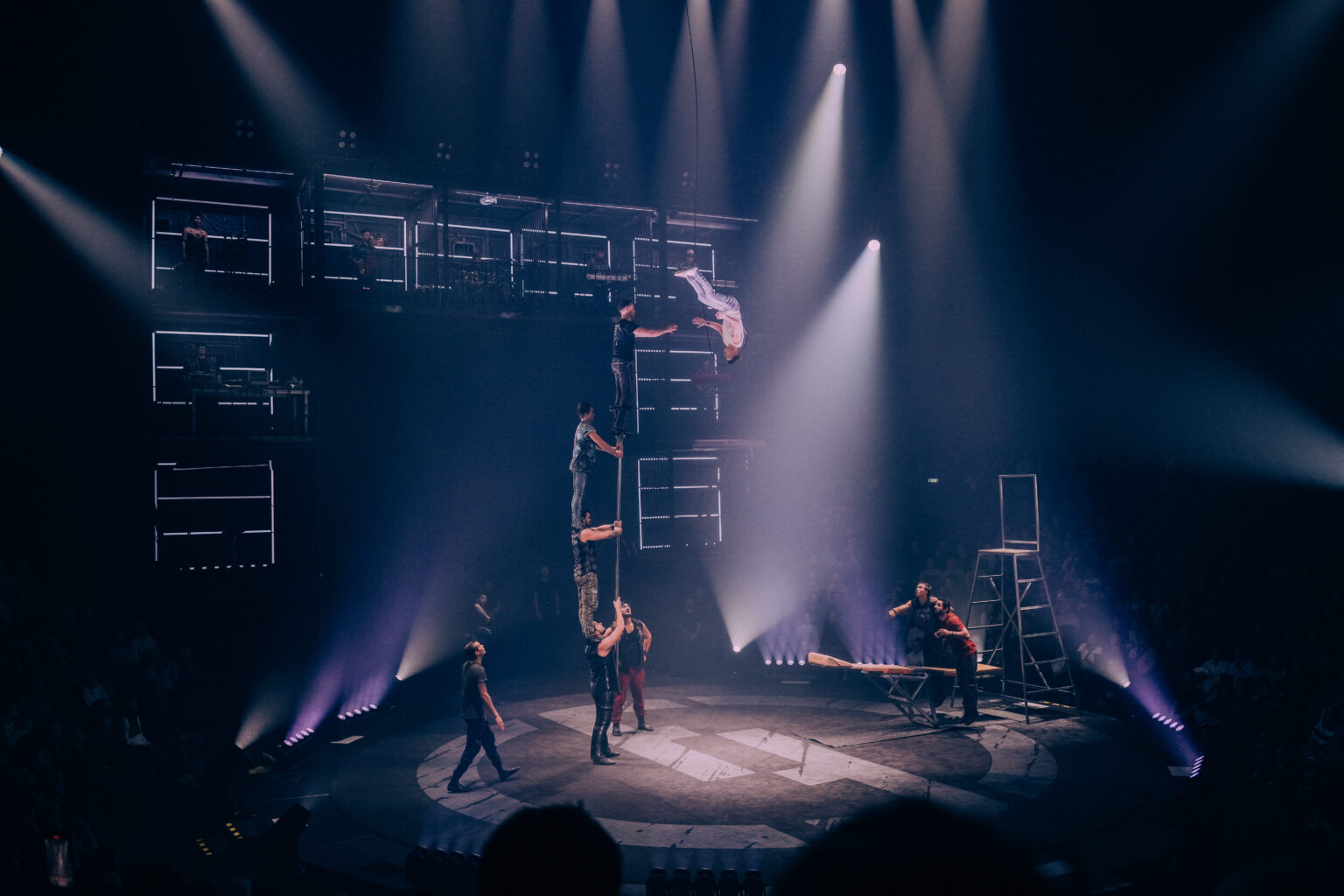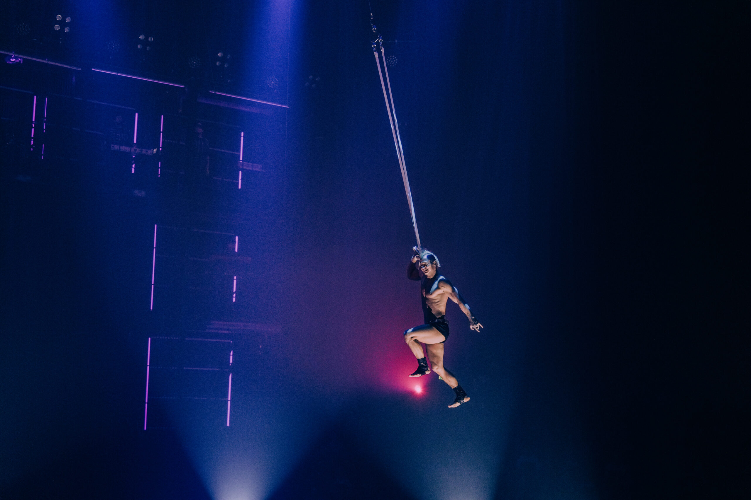 Dankzij die muzikale en visuele basis komen de acts perfect tot hun recht. In de eerste helft springen onder andere de strapaten-act van Viktar Shainoha eruit, rauw en fysiek intens, en het knappe balanceerwerk van Ameli Bilyk op het slappe koord. Haar beheersing, gecombineerd met de sfeer die licht en muziek oproepen, maakt dit tot een act die blijft hangen.