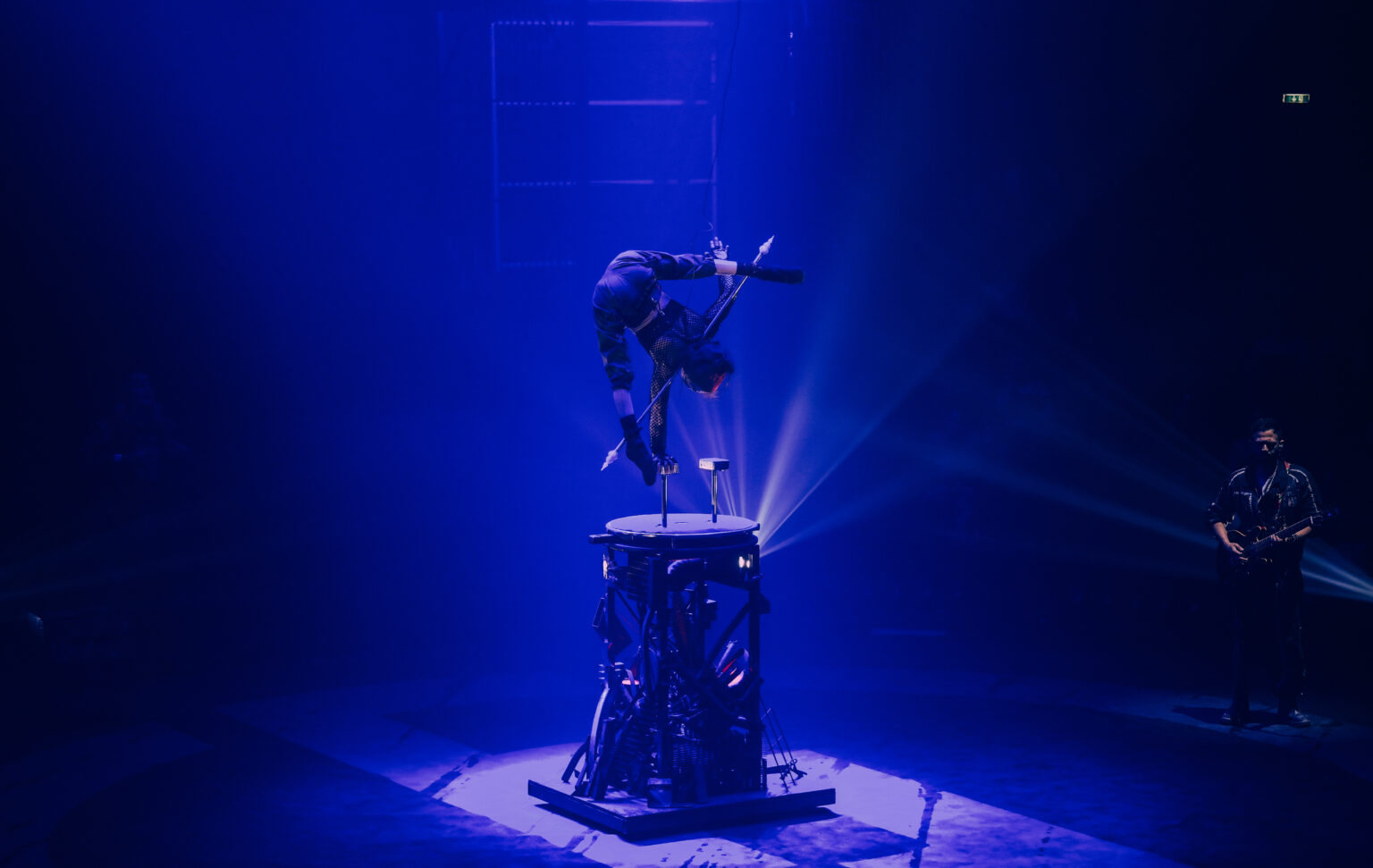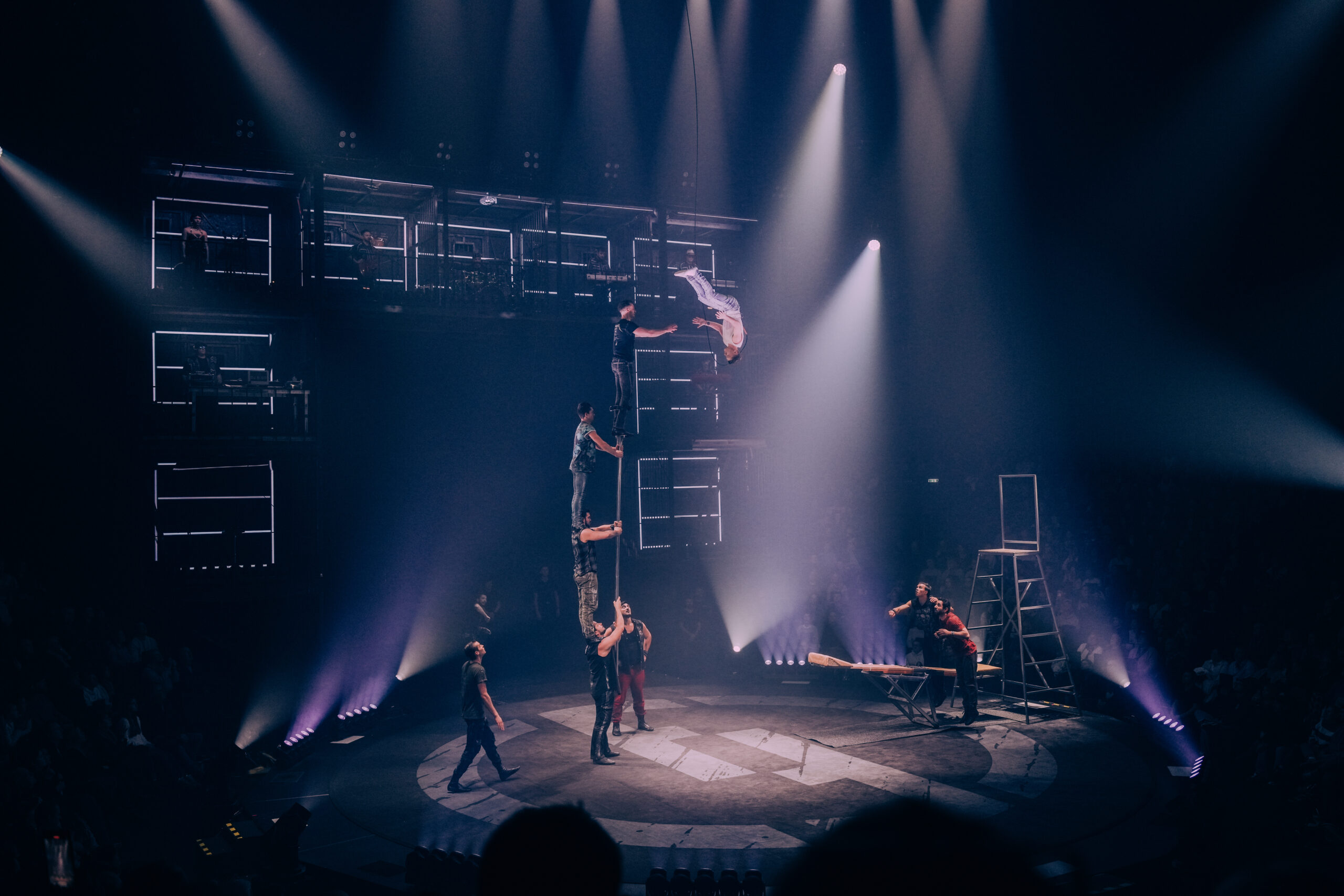 Een van de absolute sleutels tot het succes van deze productie is het samenspel tussen licht en muziek. Het lichtontwerp is ronduit gruwelijk goed: gelaagd, dynamisch en maximaal benut. Elke hoek van de immense tent wordt ingezet, zonder dat het ooit gratuit wordt. De liveband – bestaande uit Franse muzikanten – geeft de show een krachtige rockdrive. Geen voorspelbare Rammstein-covers, maar origineel, muzikaal interessant werk dat de acts ondersteunt en versterkt. Het resultaat is een voorstelling die voelt als een doorlopend rockconcert, waarin circus de hoofdrol speelt.