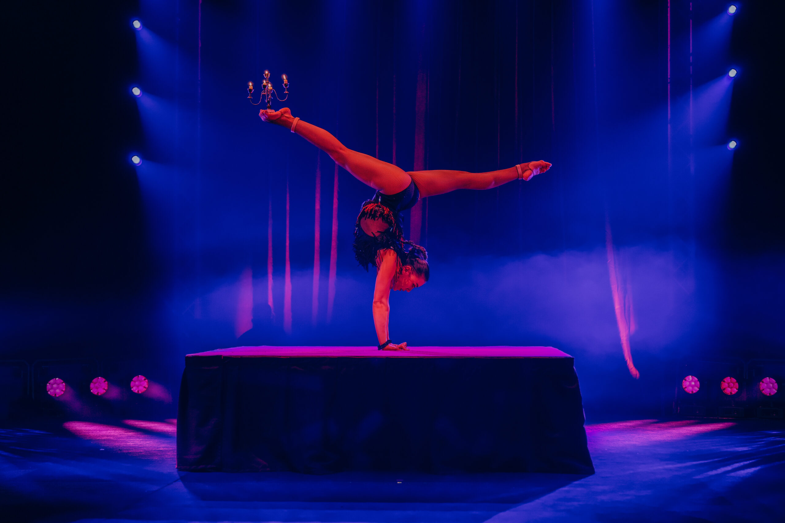 Het thema ‘licht’ is slim en consequent doorgevoerd, zonder dat er een geforceerde of dunne verhaallijn aan vastgeplakt wordt waar het publiek zich doorheen moet worstelen. ‘Laat het licht stralen’ vertaalt zich hier vooral visueel en inhoudelijk in de acts zelf. Denk aan het verfijnde schaduwspel van Matteo Fraziani, stuiterbal-jonglage met lichtgevende ballen van Nicolas Lagroni, het bombastische laserspektakel van Anke de Boer, de unieke acrobatiek aan bliksemschichten van Javier Gama en het slangenmens-werk van GiGi, die kandelaren met brandende kaarsen met handen en voeten in bedwang houdt.