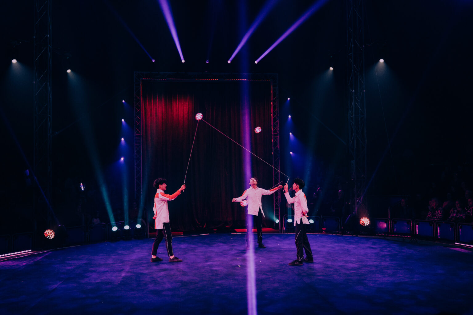 Vroeg in de voorstelling staat de diabolo-act van Triple-T geprogrammeerd. Op het eerste gezicht kijkt de act prettig en toegankelijk weg. Wie beter kijkt, ziet echter een nummer dat bol staat van complexe diabolo-technieken, lange touwen en een bijna onwerkelijke timing. De synchroniteit en choreografie maken duidelijk dat dit een act van wereldniveau is, verpakt in een frisse, energieke presentatie.