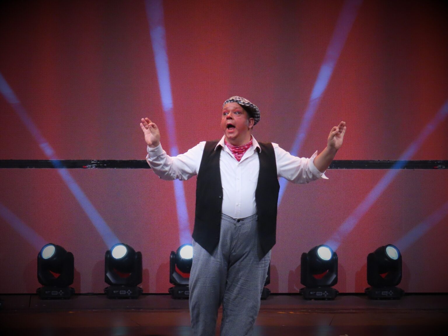 Alicia is uitbundig, enthousiast en bezit een dijk van een stem. Eentje die prettig, rauw en schurend is. Haar niet te gepolijste stemgeluid is exact wat de voorstelling zoveel flair geeft. Daarentegen is Martin een hele ingetogen gast die focust op zijn gitaarspel en daarbij minder het podiumbeest is dat zijn vrouwelijke collega wél is. Ze houden elkaar goed in balans en kennen hun plek in het geheel. Ook is het voor de afwisseling fijn wanneer de muzikanten er even niet zijn, bijvoorbeeld als de clowns hun werk doen.