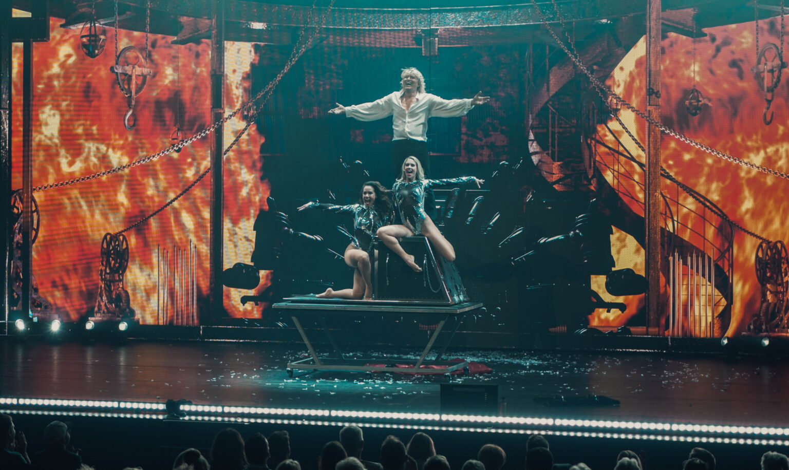 Het immense videoscherm is een enorme meerwaarde in de show. Haarscherpe beelden creëren de juiste setting. Het scherm faciliteert scènes van grootsheid, maar het is ook bij machte om op de juiste momenten kleinere ‘nachtclub-achtige tafereeltjes’ te laten ontstaan.