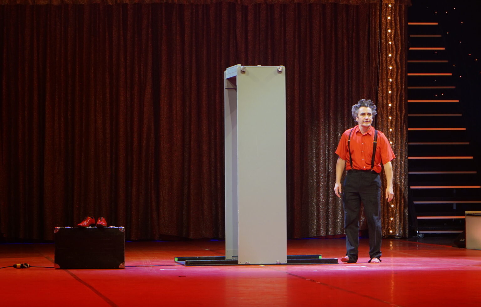 ‘Duo Hand 2 Stand’ is vervolgens de eerste act met een prachtige handbalans. Sierlijk, krachtig en de ronddraaiende schijf waarop het duo werkt, geeft de act nét dat beetje extra beweging. Na de pauze keren Camille & Louis-Marc terug. Deze keer met een luchtnummer dat qua sfeer en qua stijl in lijn licht met hun handbalans. Zij die met haar blote voeten aan de blote voeten van hem hangt. En dat alles op de tast en erop vertrouwend dat Camille het goed uitvoert, want Louis-Marc is op dat moment geblinddoekt…
