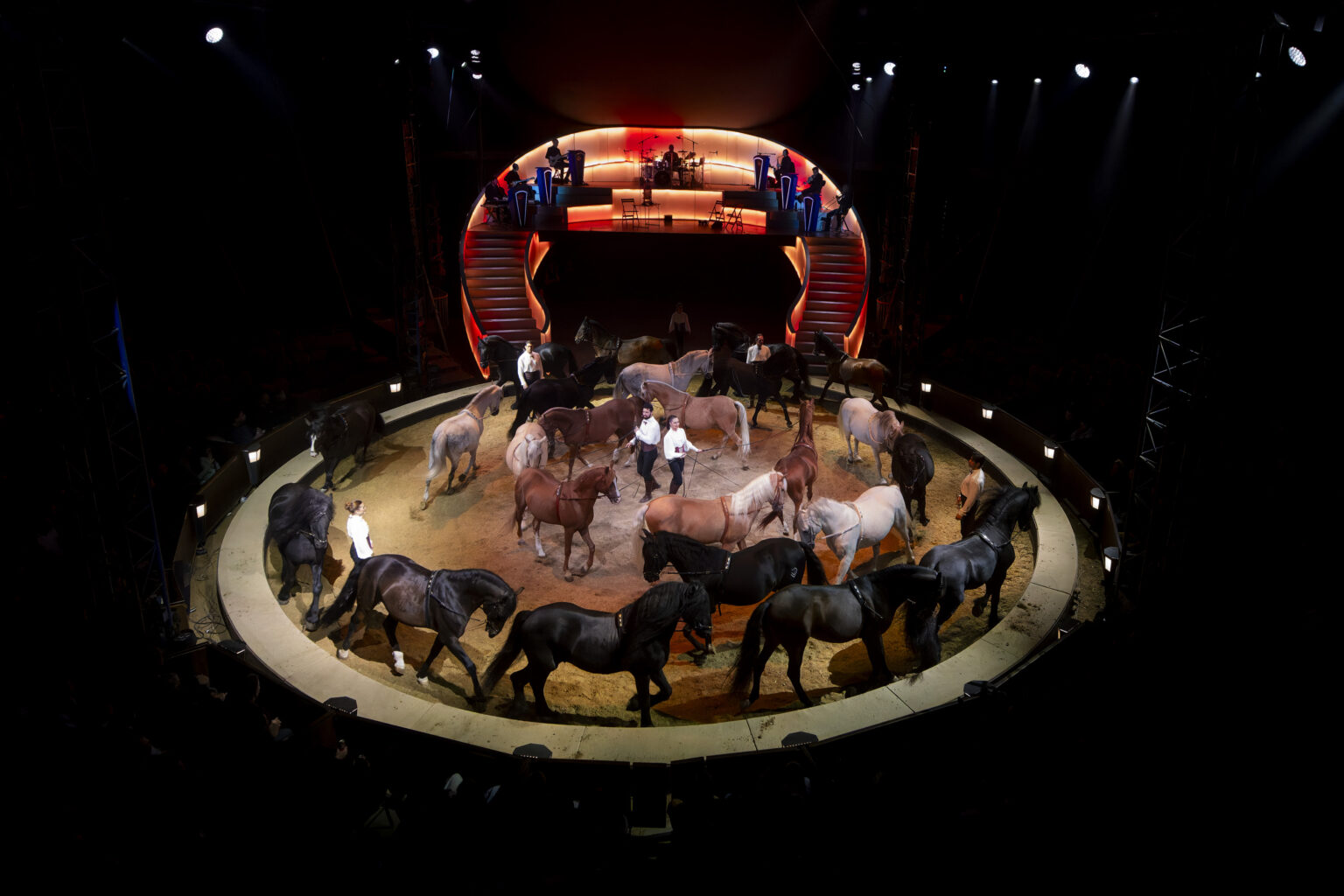 Al vroeg in de voorstelling ontstaat een elegante paarden-carrousel door Maud en Charles Gruss. Het beeld is klassiek, stijlvol en technisch feilloos.