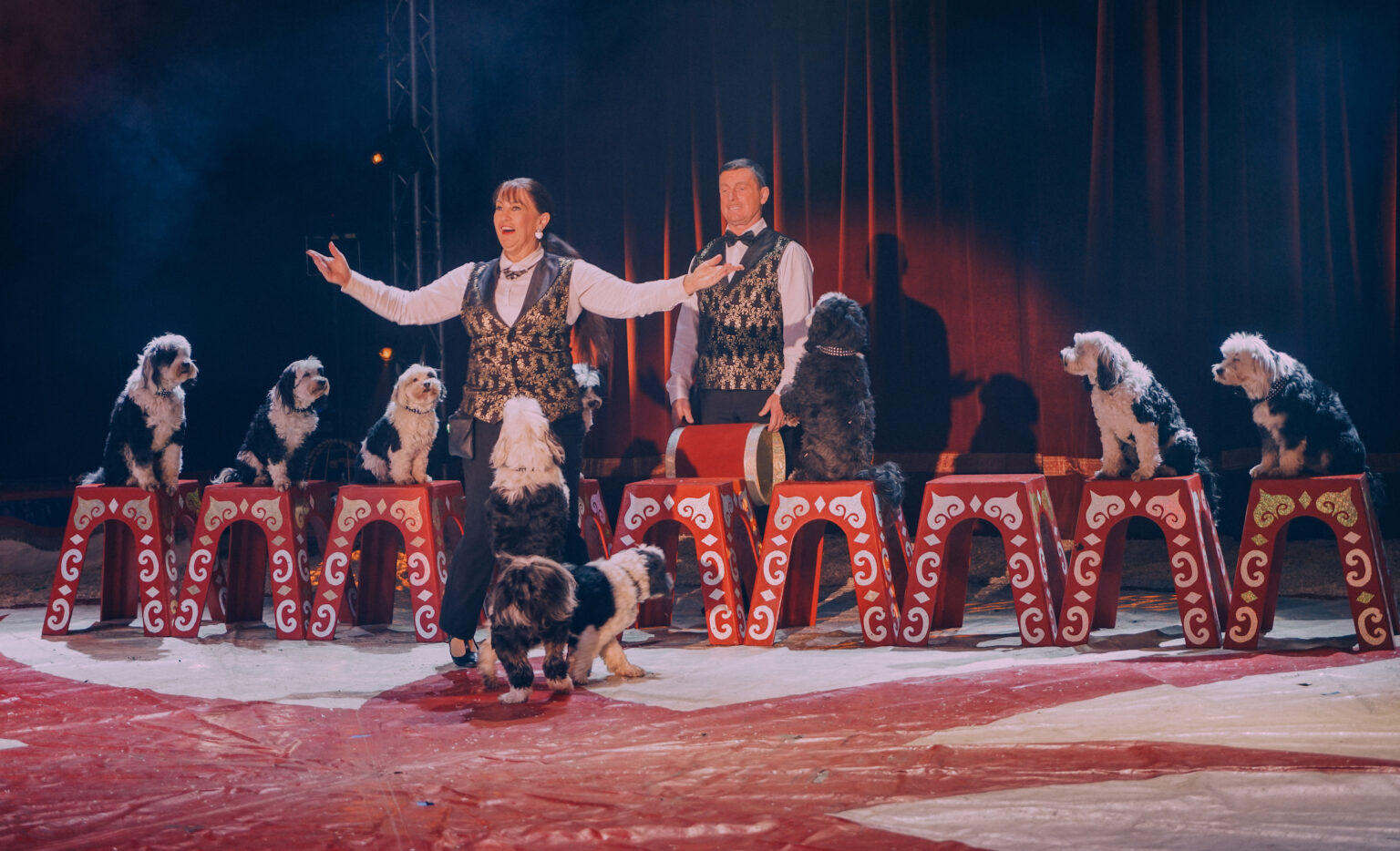 Na Ramos bestormen de negen viervoeters van Daniel en Josephine Igen de piste. Prachtige beestjes en een leuke en speelse act. Datzelfde geldt na de pauze voor de act met geiten van hetzelfde duo. Beiden acts zijn netjes en verzorgd. En in beide gevallen zien de dieren er mooi en vrolijk uit en hijsen hun baasjes zich in retro outfits.