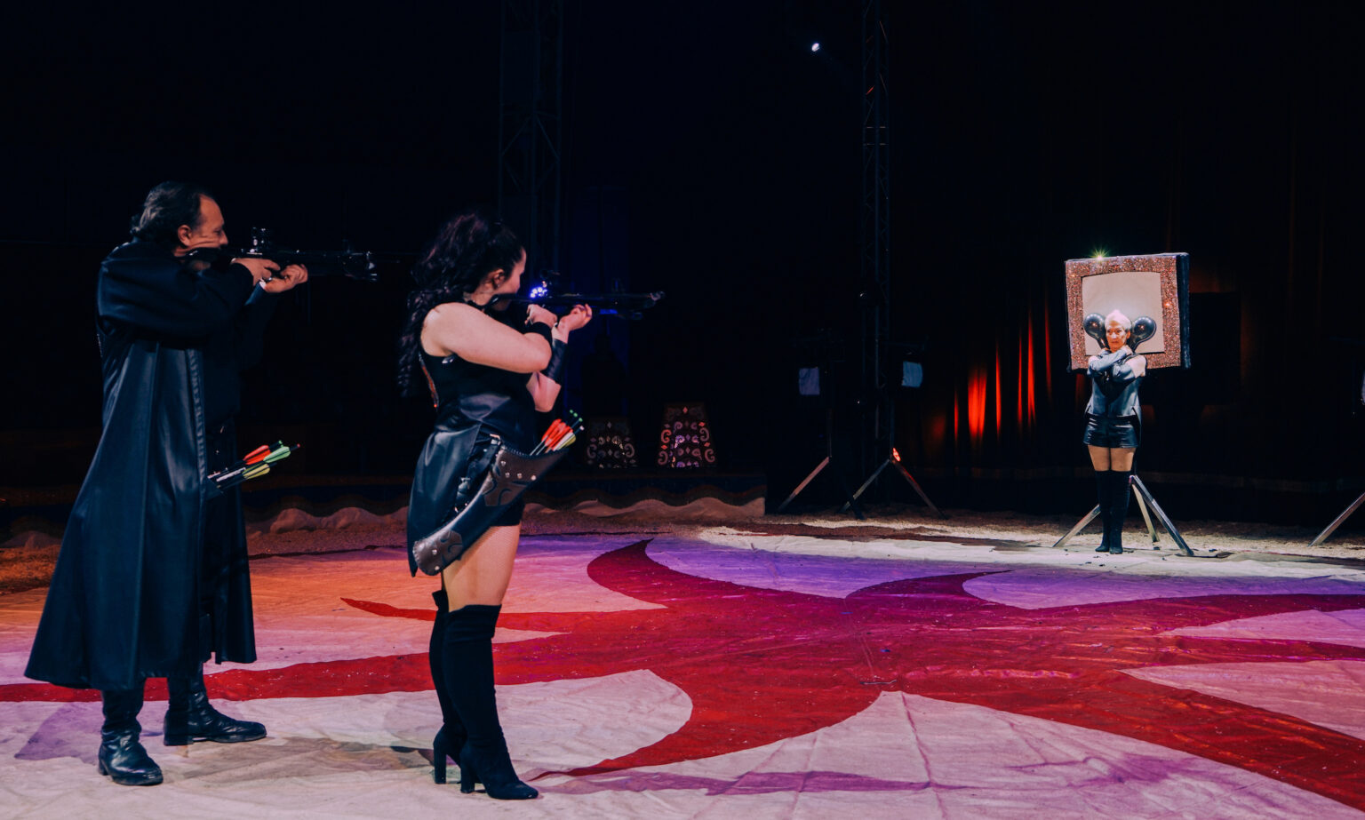 Een voorbeeld daarvan is de kruisboogact van ‘Trio Varanne’. Een act, waarbij in de basis alle drie de artiesten nul komma nul uitstraling hebben. Dochter is té druk bezig om te laten zien dat ze een circusprinses is. Moeder doet – op wat voorzichtige glimlachjes na – geen enkele moeite om een vorm van uitstraling te delen. En vader oogt alsof het hem allemaal niks boeit en loopt horkerig rond. Het gekke is: wát het trio qua kruisboogtrucs daadwerkelijk toont, is best okay. Zo vuurt Phillipe aan het einde van de act een kruisboog op zijn vrouw af. De pijl schiet door haar haren, maar doorboort met succes het einddoel: een appel.