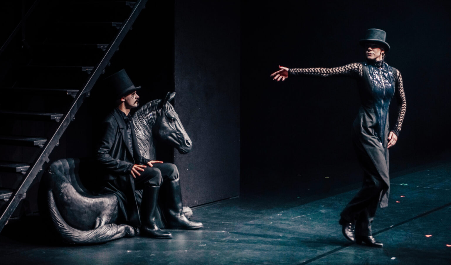 Een van de meest indrukwekkende momenten zit – redelijk aan het einde van de voorstelling – in het samenspel tussen Scapino-danseres Ellen Landa (als Oscars vrouw), circusartiest Charlie Hession en een toekijkende Filip Wagrodzki (in zijn rol als Oscar Carré). Ellen zit op haar paard (in de voorstelling een grote omgebouwde gymnastiekbok met wielen bij de poten). In een waanzinnig tempo trekken Charlies brede armen het paard met daarop Ellen rond. Landa’s rode haren en zwarte jurk wapperen op het bewegen van de lucht en verleiden Oscar.