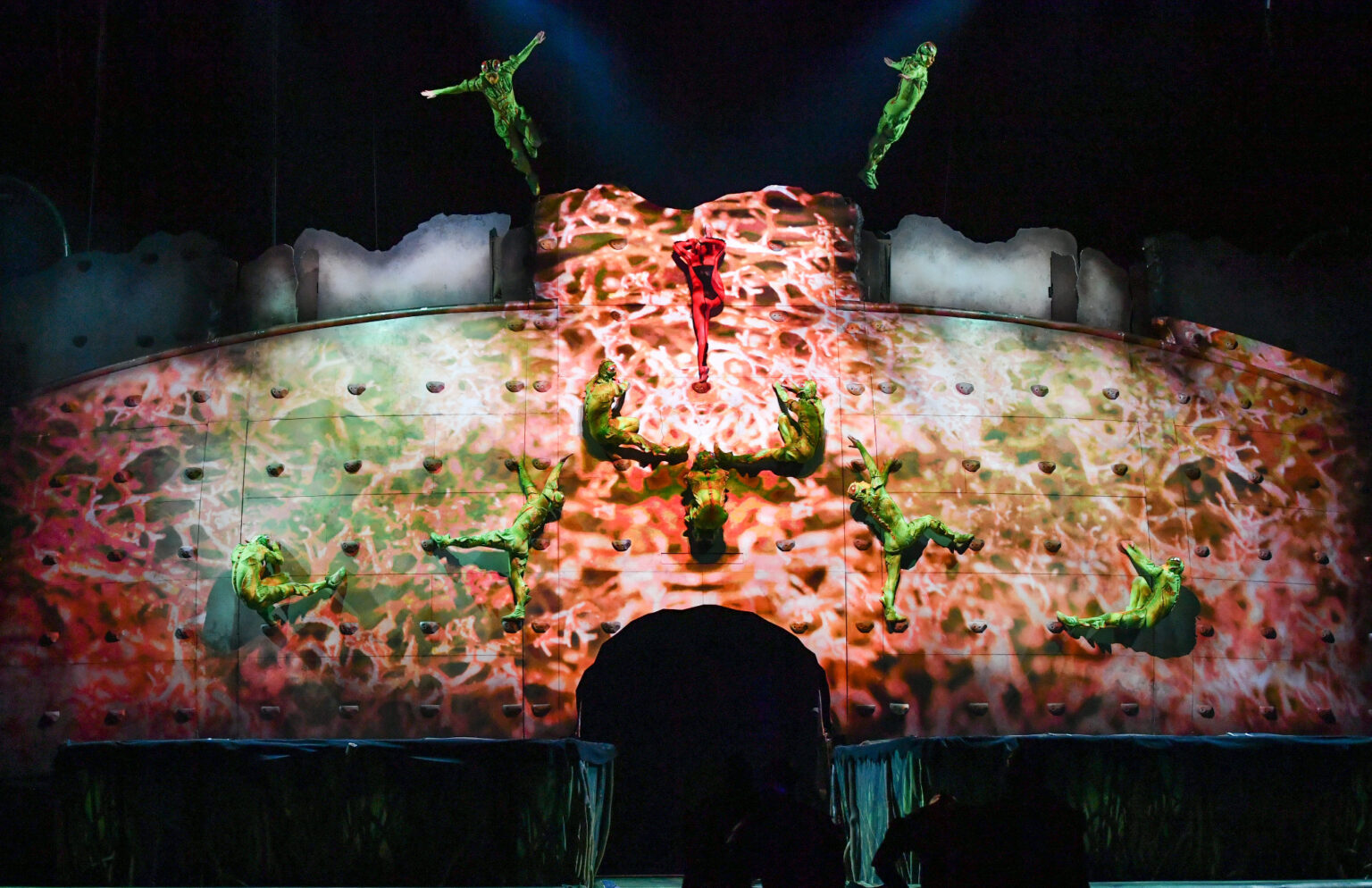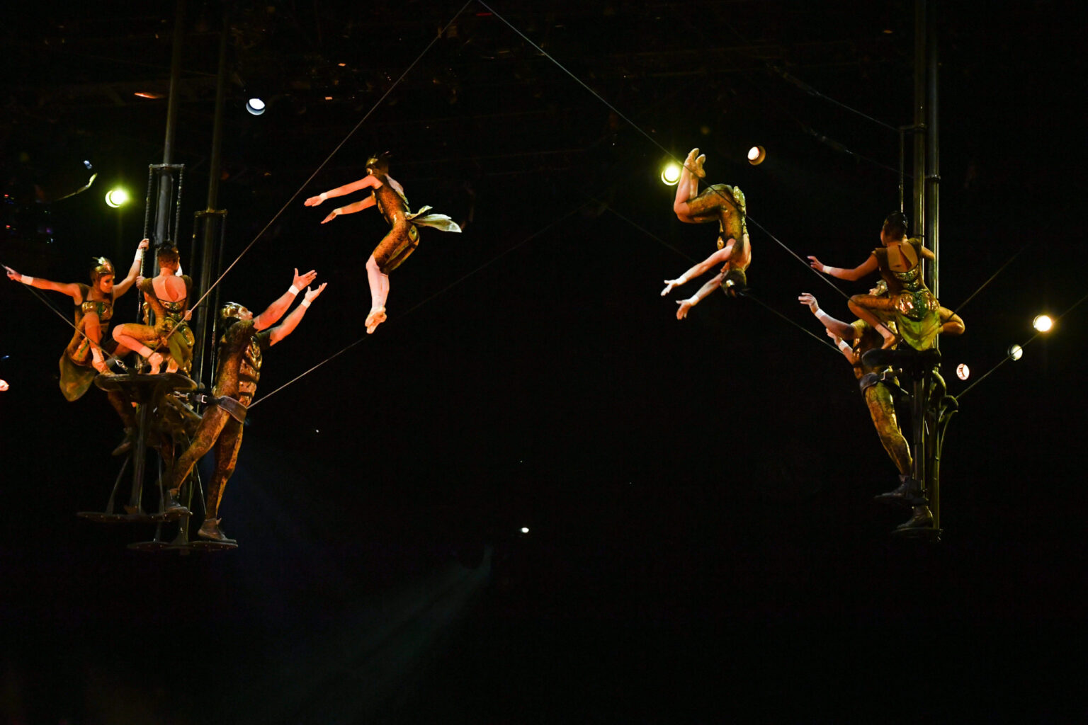 Verder zien we in het eerste deel een leuke ‘slinky act’, waarbij rekbare ledematen zich over het podium bewegen en is luchtacrobatiek aan de triple vangstoel uniek en adembenemend. Tien acrobaten vliegen een ongekend spectaculaire act bij elkaar.