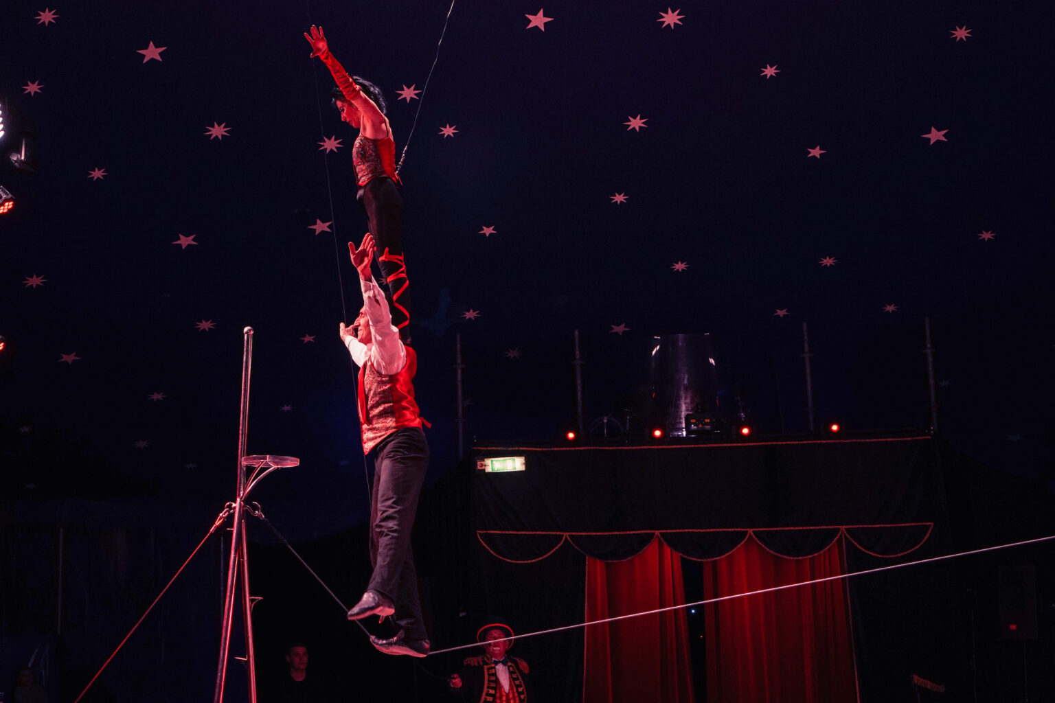 Wat eveneens bijzonder indrukwekkend is, is het werk van ‘The Sangers’ en Alessandro en Cristina Gillert. ‘The Gillerts’ tonen waanzinnig balanceerwerk op de slappe draad. Qua hoogte bevindt het koord zich tussen de low wire en de high wire. En wat de artiesten op hun hogere leeftijd beheersen is absoluut vakwerk.