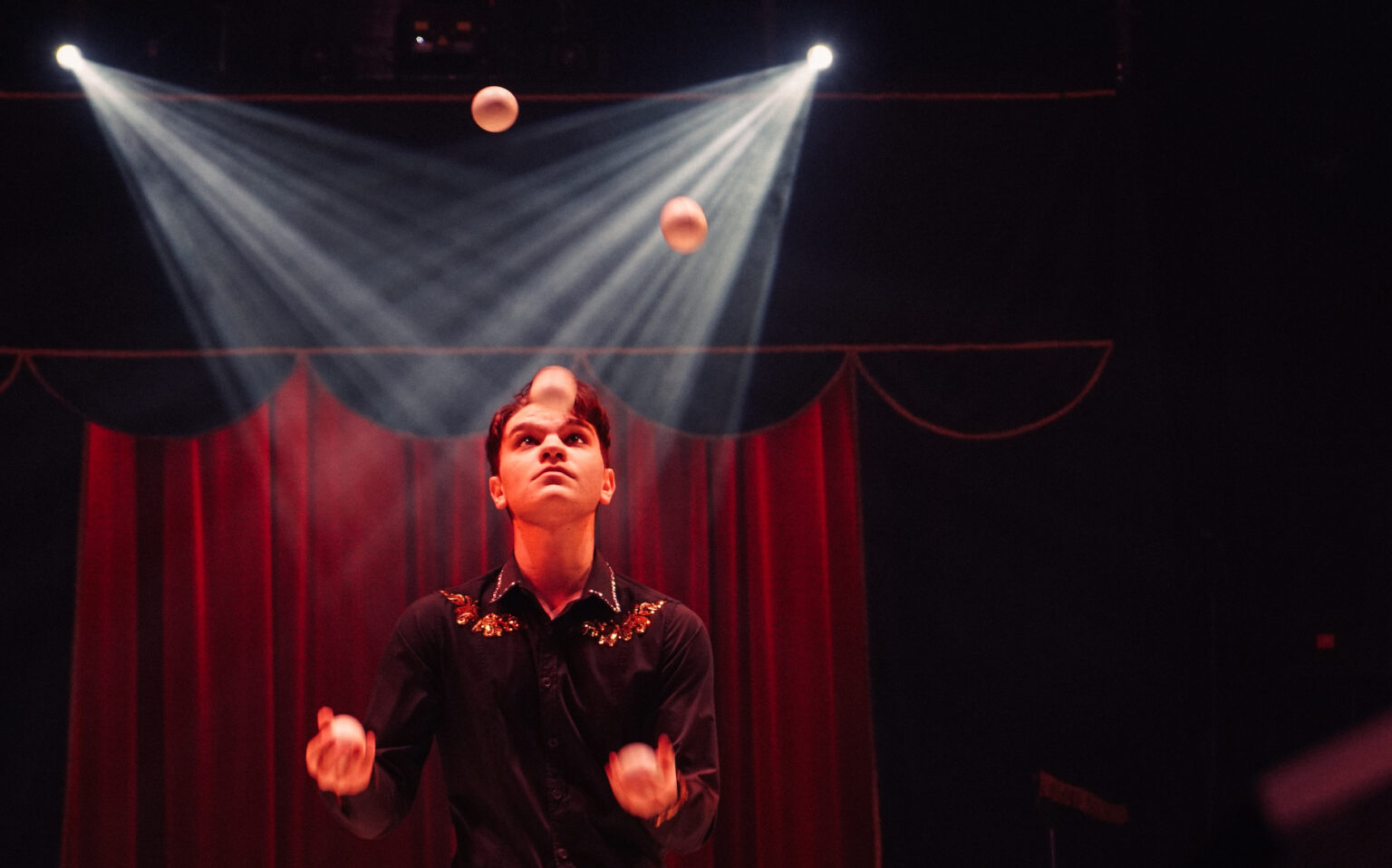 De twintiger Thomas Codanti straalt in Salto’s Wintercircus met zijn jongleeract. Wat een leuke gast! Zo nu en dan glipt er een bal of een keu op de grond. Maar zijn charismatische performance trekt alles recht. Hoogtepunt: een foutloze truc met zes clubs!