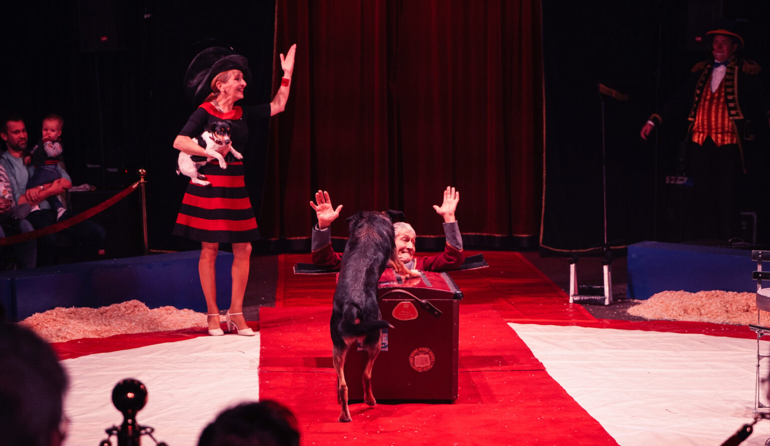 Dat geldt ook bij het eerste duo, bestaande uit Pascale en Mike Sanger. Zij brengen een komische hondenact, waarbij ‘lift boy’ Mike de bagage van de decadente dame Pascale wil opruimen. Twee honden maken dat op dolkomische wijze onmogelijk.