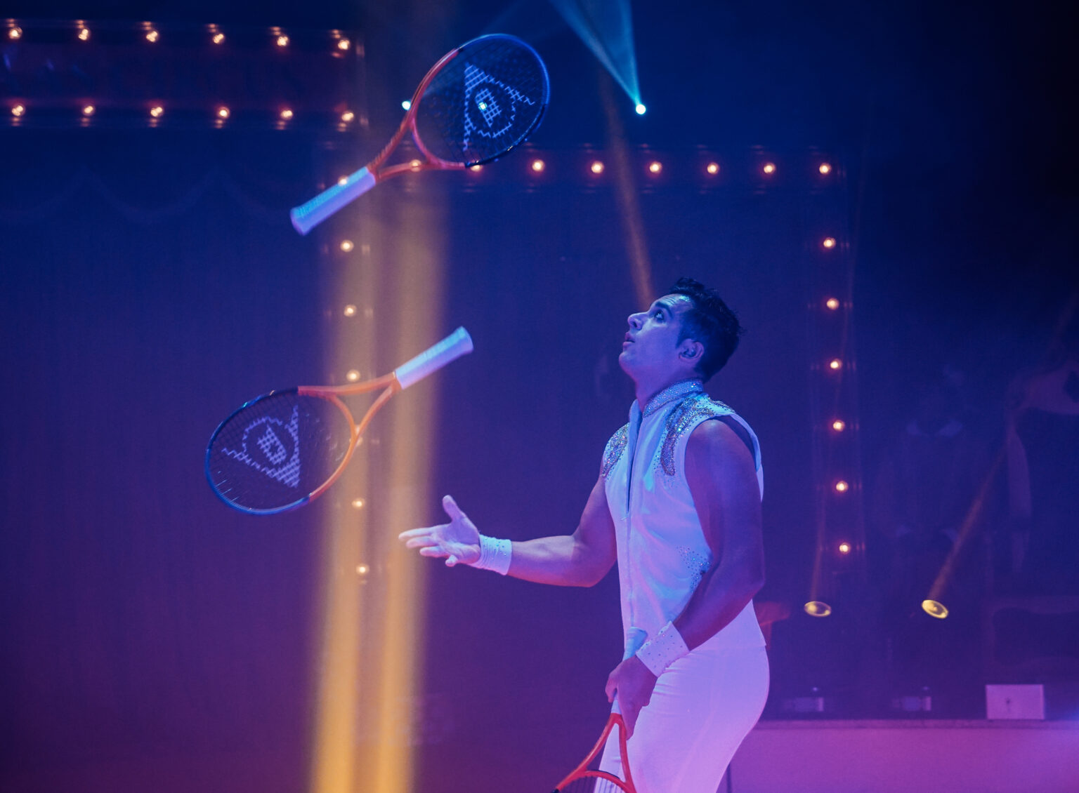 De Italiaanse jongleur Glenn Folco brengt een unieke twist aan zijn act door tennisrackets met ongekende snelheid en precisie te jongleren. Het publiek kan zijn ogen niet afhouden van zijn behendigheid. Adele Fame, een van de grootste talenten op het gebied van luchtacrobatiek, zweeft met sierlijke choreografieën aan de strapaten door de lucht en zorgt voor momenten van pure magie.