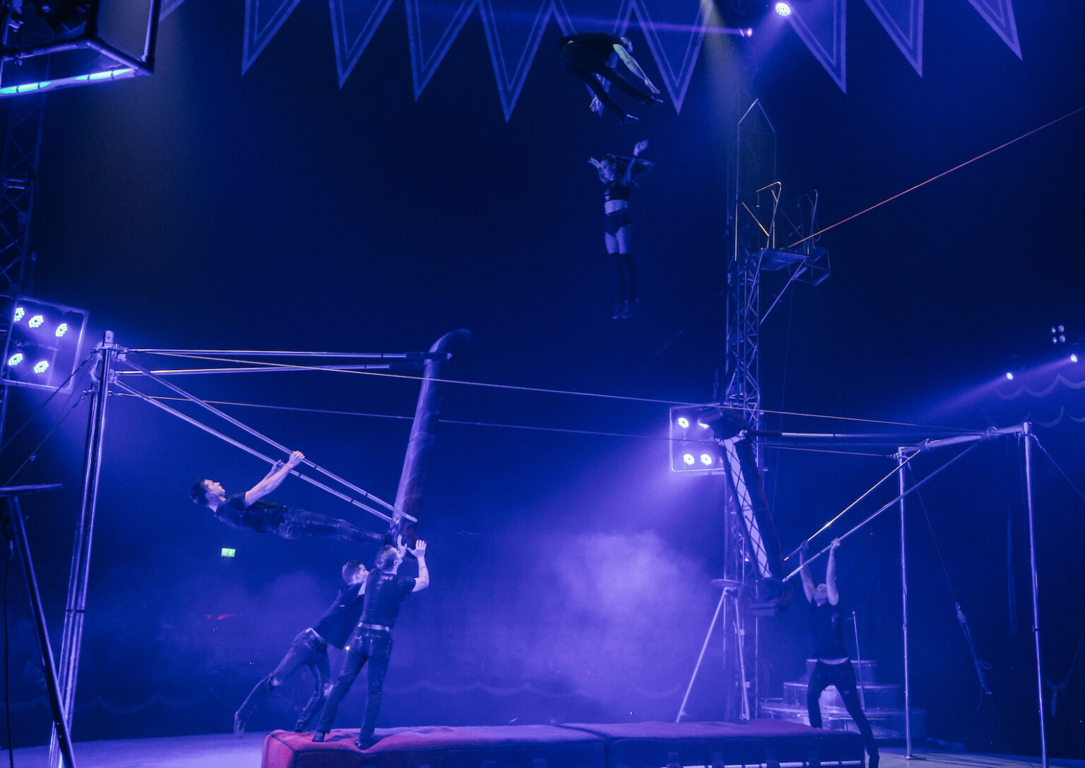 Troupe Didyk is aan zet in de eerste act van de tweede helft. Op, boven en tussen twee grote schommels laten ze adembenemende stunts zien op instrumentale tapemuziek van Rammstein. De acrobaten worden vanaf de schommels de lucht in gekatapulteerd. En daarbij is de toevoeging van een trapezerek een extra verrassing.