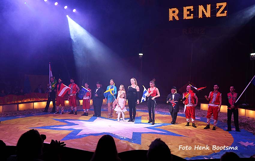 In een finale met 15 personen in de piste namen deze afscheid van de bezoekers na een programma van bijna 2 uren circus waarbij de confetti en vlaggenparade bij Renz Berlin vanzelfsprekend niet mochten ontbreken.