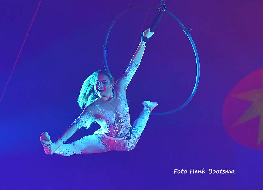 Bekende acts in dit circus zijn de ringtrapeze door Madeleine en de hoela hoep- en netact van Laila Virginia Renz, welke een extra show dimensie kregen door de veelkleurige belichting.