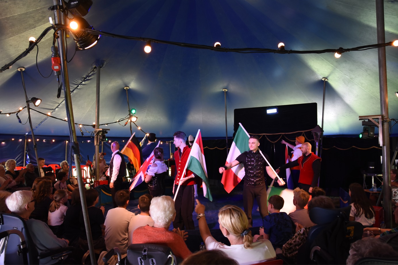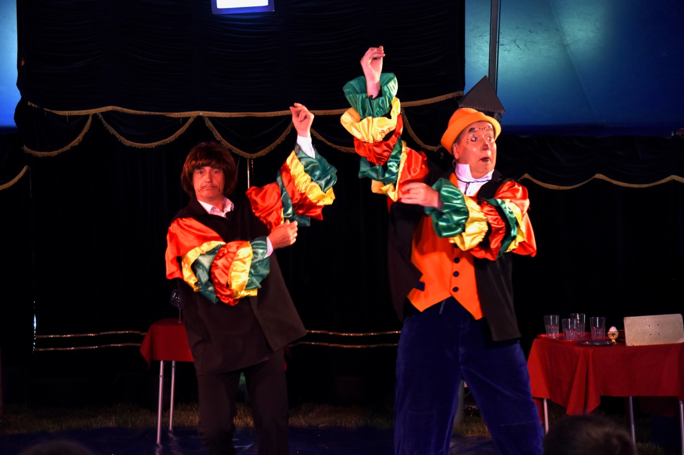 Wanneer Frenky in de piste plaats neemt op een ouderwetse vuilnisbak raakt hij verbaasd over de inhoud van die bak. Riemen met bellen die hij aan armen en benen vastmaakt en dan ontstaat er weer een muzikaal nummer. De Los Mexicano’s (François en Beate) presenteren in Mexicaanse stijl het lasso draaien en messenwerpen . Robin van De Tonito familie sluit het programma af met zijn Rola Rola act waarna alle artiesten met vlaggen in de piste afscheid nemen van het publiek. Na de voorstellingen moeten de kostuums en rekwisieten naar de zorginstelling worden overgebracht, waar over ongeveer een uur vanwege de stormachtige weersvoorspelling de volgende voorstelling gaat beginnen.