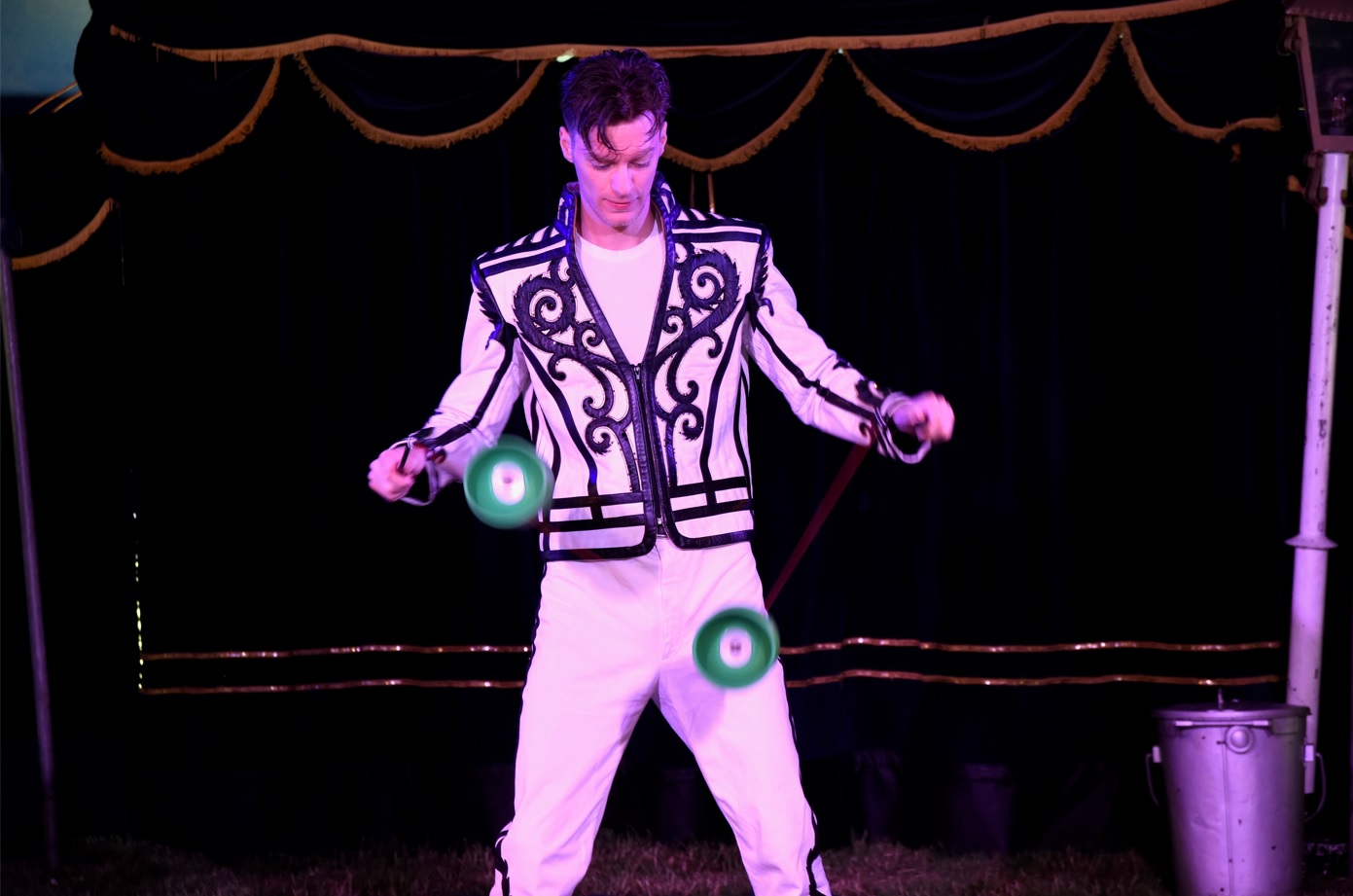 Dennis junior van de Tonito familie liet de Diabolo’s behendig door de lucht gaan. Wederom Mr. Valentino in de piste met vijf van zijn honden, een gemêleerd hondengezelschap die zeer gewillig hun kunsten vertoonden.