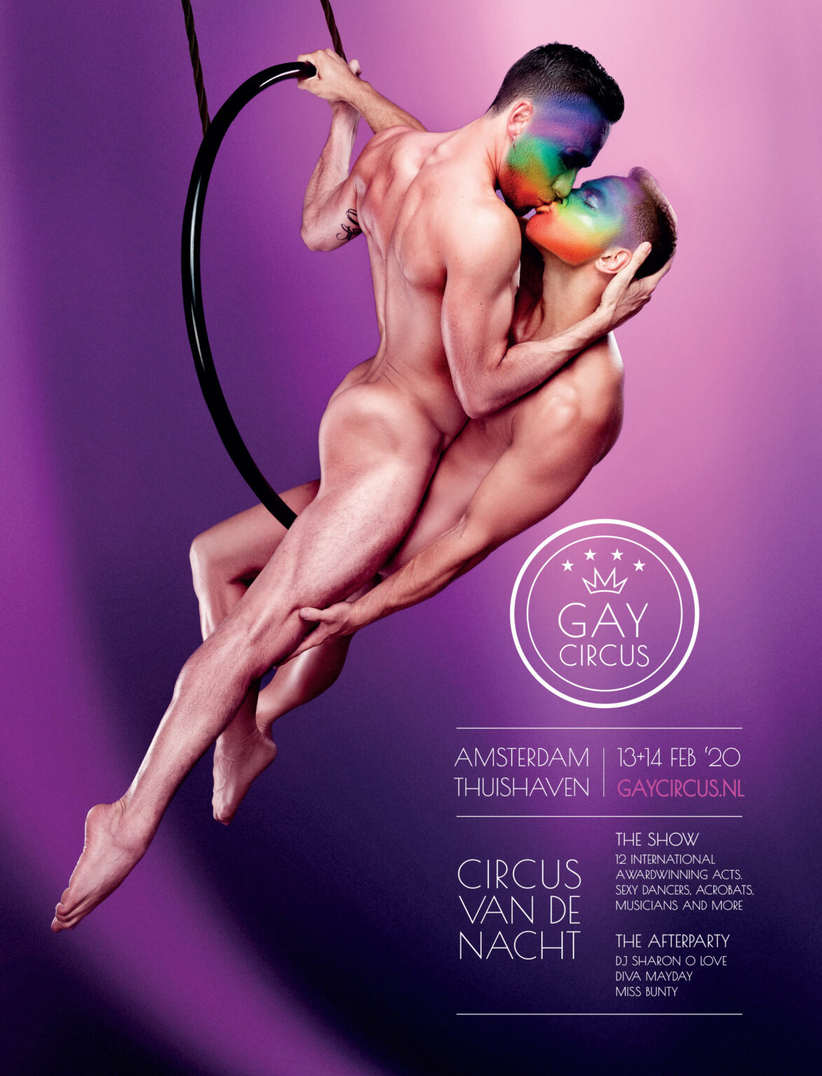 Tussen de zwierende kranen en het industriële spoor van de port of Amsterdam ligt de Thuishaven: De Culturele Vrijhaven van de stad. Op deze vrijgevochten locatie wordt rond Valentijnsdag het Gay Circus 2020 georganiseerd. Producent Alex Sijm organiseert reeds 20 jaar uiteenlopende circusvoorstellingen. Het idee van een Gay Circus stond al langere tijd op zijn verlanglijstje. Na twee jaar voorbereiding gaat “The gayest show on Earth” nu eindelijk in première. Speciaal voor dit event zijn twaalf internationaal bekroonde roze circusacts geselecteerd. Naast het brengen van mooie shows hoopt het Gay Circus geld in te zamelen voor het Aidsfonds.