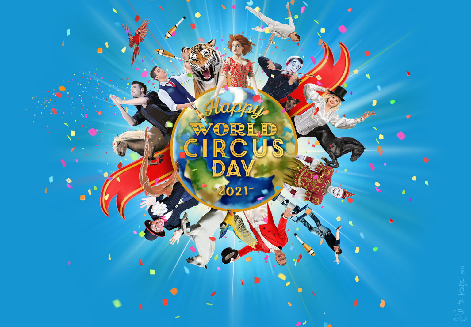 Op elke derde zaterdag van april is het ‘Wereld Circus Dag’ (World Circus Day). In Nederland houden normaal gesproken alle Nederlandse tentcircussen een open dag en kunt u een kijkje nemen achter de schermen van het leven en werken van de artiesten. Vandaag is het anders, in het tweede coronajaar zijn nog steeds alle evenementen in Nederland verboden. Maar er is hoop, licht aan het einde van de tunnel. En wat blijkt het licht aan het einde van de tunnel zijn de spotlights die vandaag gericht zijn op Wereld Circus Dag.