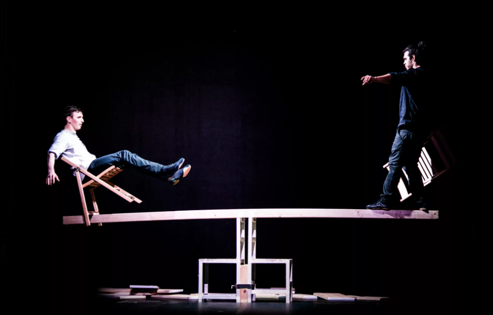 Een komisch gevecht tegen de zwaartekracht. In hun Schouwburgshow OVVIO gaan David & Tomás van Kolektiv Lapso Cirk de strijd aan met elkaar én de zwaartekracht. Het gaat een keer mis, maar tot die tijd hebben ze zoveel mogelijk lol.