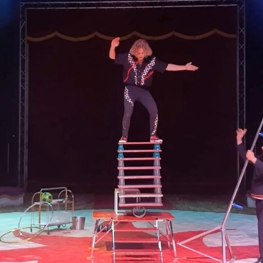 Circus artiesten zijn de jonge en getalenteerde Belgische Mister Joachim… Jonglage en rola rola. Miss edith, aerial net, hoops and bubbles. Bram Bam. Slappe touw. En natuurlijk Dimitri Nolet