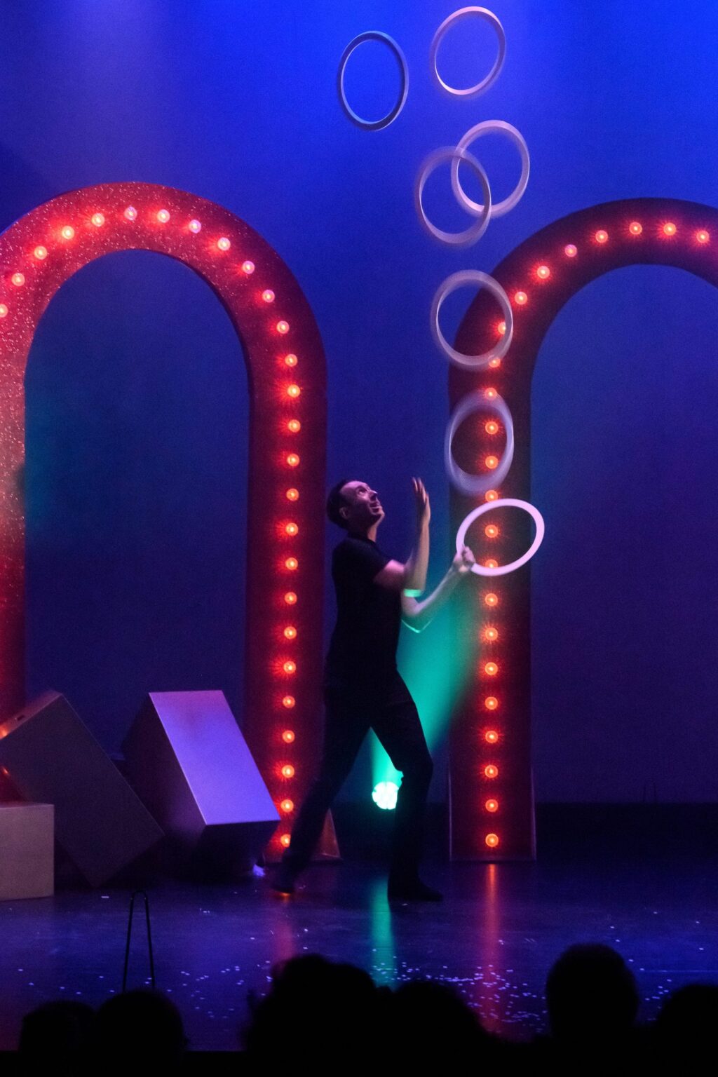 Henri Kangas uit Finland is een ware diabolomeester. Hij specialiseerde zich in dit bijzondere object en weet er meerdere tegelijk in de lucht te houden.